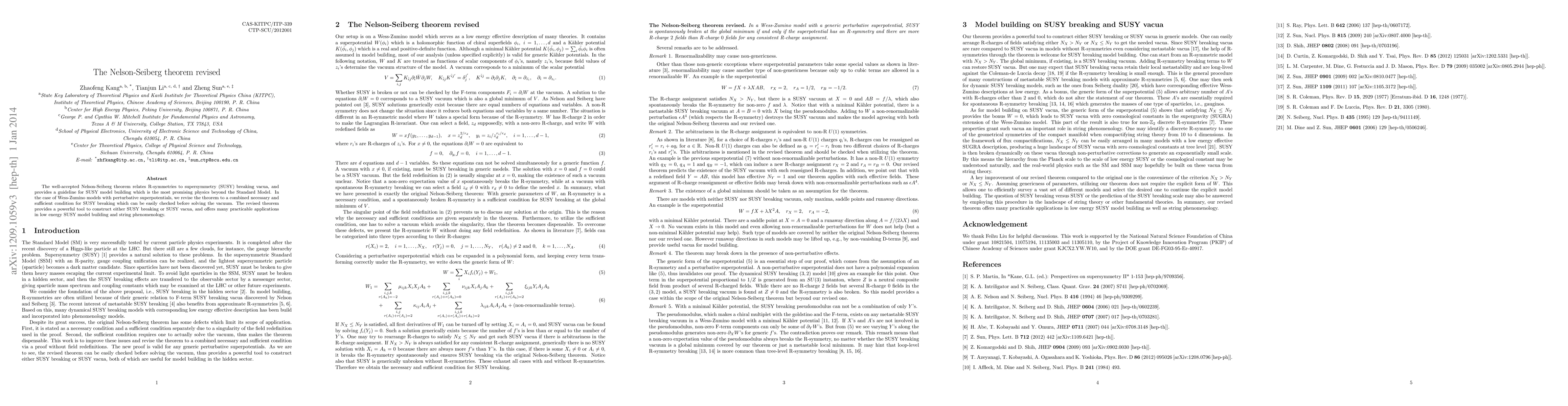 The Nelson-Seiberg theorem is revised to provide a combined necessary and sufficient condition for supersymmetry breaking in Wess-Zumino models, facilitating practical applications in low energy SUSY model building and string phenomenology. This revision offers a powerful tool for constructing either SUSY breaking or SUSY vacua.