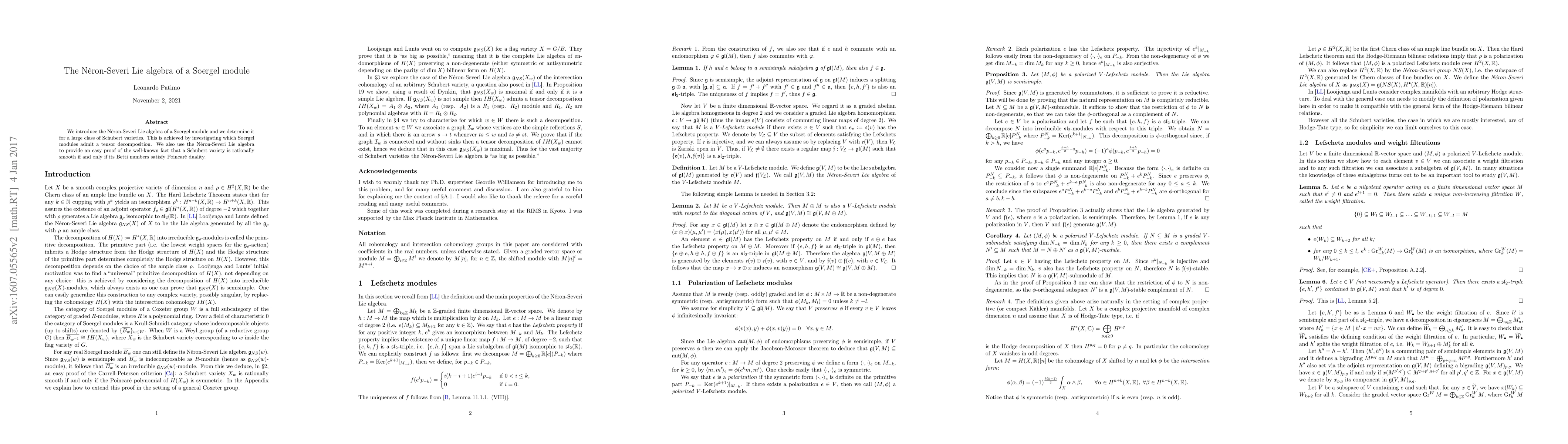 The introduction and characterization of the Néron-Severi Lie algebra of a Soergel module, along with its application to Schubert varieties, represents a significant technical advancement in representation theory and algebraic geometry.