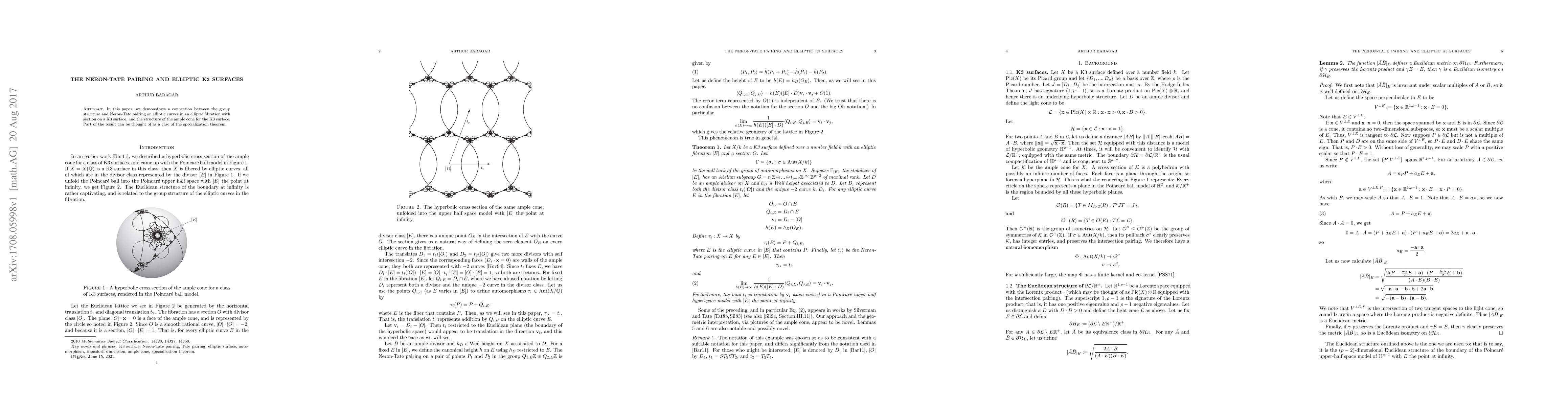 This paper establishes a link between the Neron-Tate pairing on elliptic curves within an elliptic fibration over a K3 surface and the geometry of the K3 surface's ample cone, presenting a specialized case of the specialization theorem.