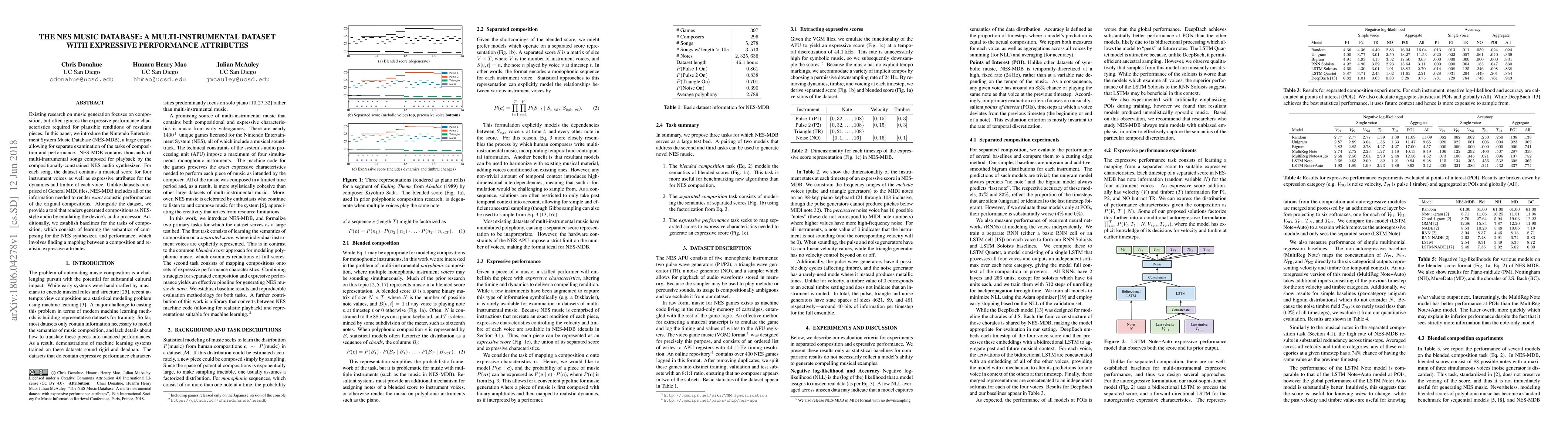 This paper introduces the NES Music Database (NES-MDB), a dataset for studying composition and performance in NES music, featuring multi-instrumental songs with expressive attributes. It also provides a tool for rendering NES-style audio and establishes baselines for composition and performance tasks.