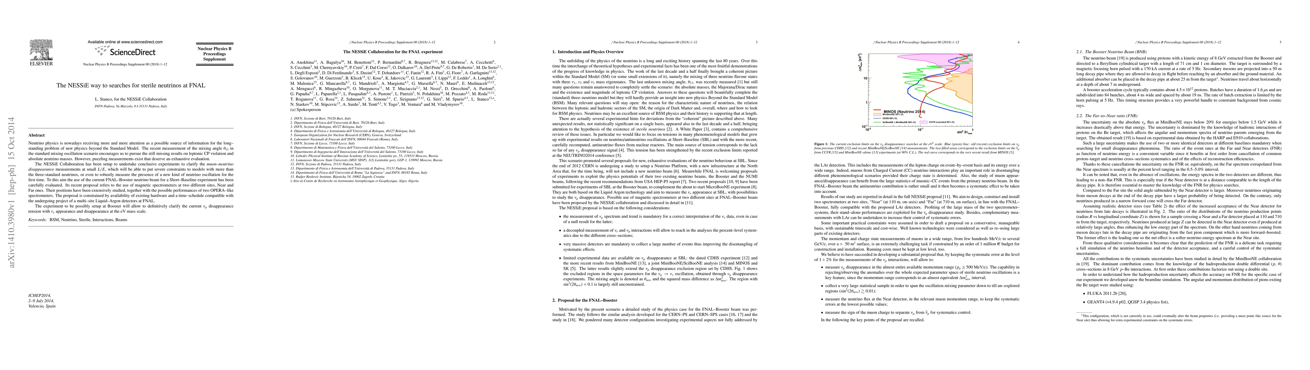 The NESSiE Collaboration aims to investigate muon-neutrino disappearance using the FNAL-Booster neutrino beam to search for sterile neutrinos or additional neutrino oscillation phenomena, employing magnetic spectrometers at two sites. The experiment seeks to resolve discrepancies in current neutrino oscillation measurements and explore new physics beyond the Standard Model.