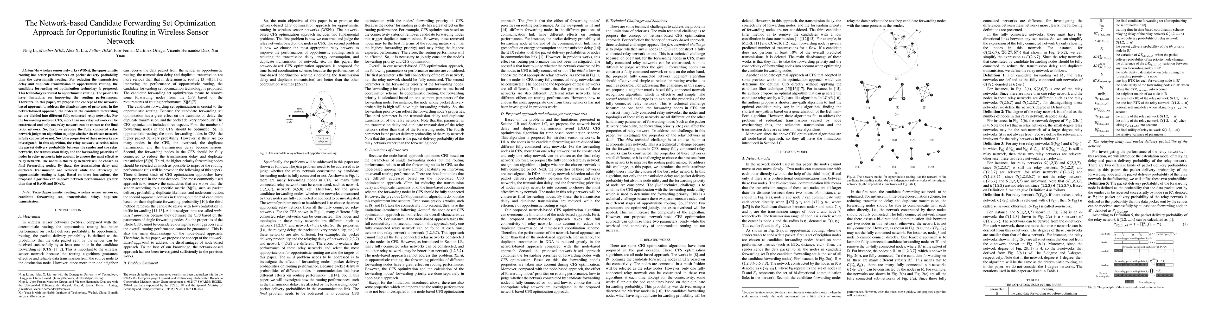 In wireless sensor networks (WSNs), the opportunistic routing has better performances on packet delivery probability than the deterministic routing. For reducing the transmission delay and duplicate transmission in opportunistic routing, the candidate forwarding set optimization technology is proposed. This technology is crucial to opportunistic routing. The prior arts have limitations on improving the routing performances. Therefore, in this paper, we propose the concept of the network-based approach to address the disadvantages of prior arts. In the network-based approach, the nodes in the candidate forwarding set are divided into different fully connected relay networks. For the forwarding nodes in CFS, more than one relay network can be constructed and only one relay network can be chosen as the final relay network. So, first, we propose the fully connected relay network judgment algorithm to judge whether the chosen network is fully connected or not. Next, the properties of these networks are investigated. In this algorithm, the relay network selection takes the packet delivery probability between the sender and the relay networks, the transmission delay, and the forwarding priorities of nodes in relay networks into account to choose the most effective relay network. The nodes in this relay network will be chosen as final forwarding nodes. By these, the transmission delay and duplicate transmission are reduced while the efficiency of opportunistic routing is kept. Based on these innovations, the proposed algorithm can improve network performances greater than that of ExOR and SOAR.