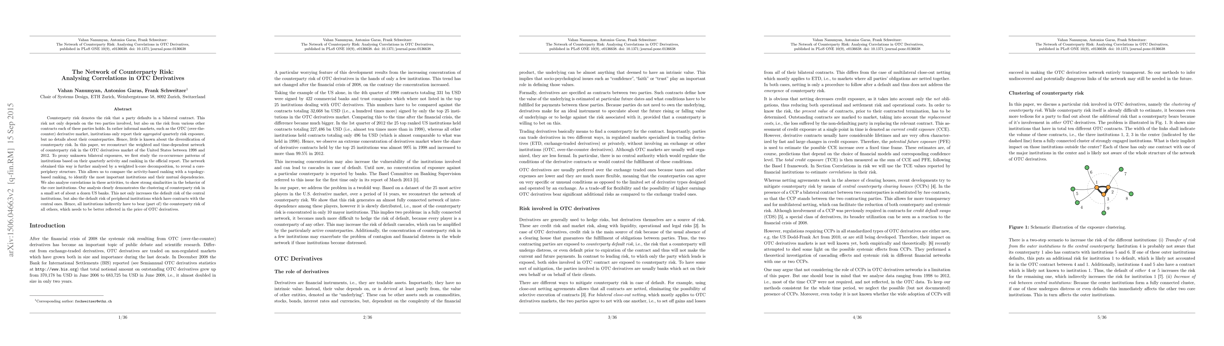 This paper reconstructs the network of counterparty risk in the US OTC derivatives market from 1998 to 2012, revealing a core-periphery structure where a small set of central banks dominate risk exposure. The analysis shows strong correlations in the behavior of these central institutions, highlighting the interconnectedness and clustering of counterparty risk that increases default risk across the entire market.