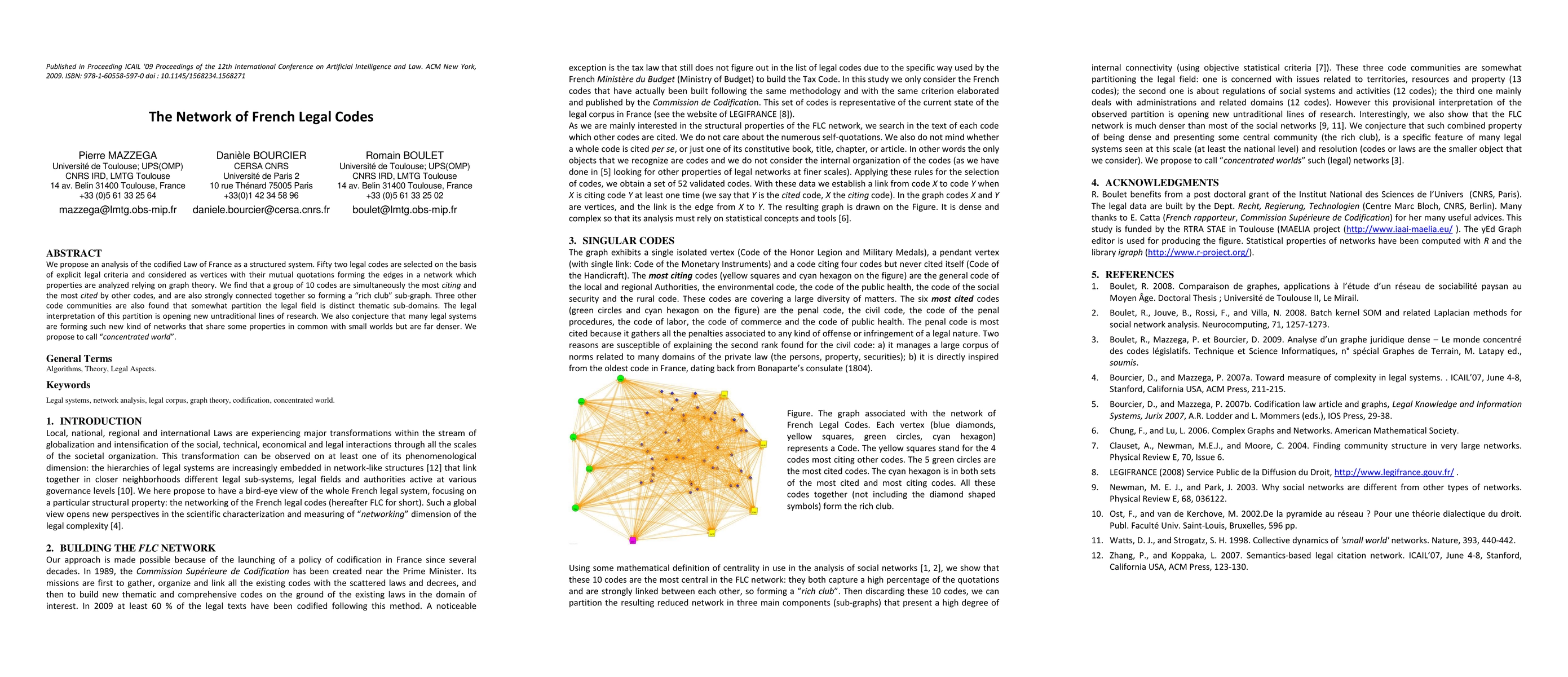 This paper analyzes the French legal code network using graph theory, identifying a dense "rich club" of 10 highly interconnected codes and three distinct thematic communities, suggesting a "concentrated world" structure common to many legal systems. The findings open new avenues for legal interpretation and research.