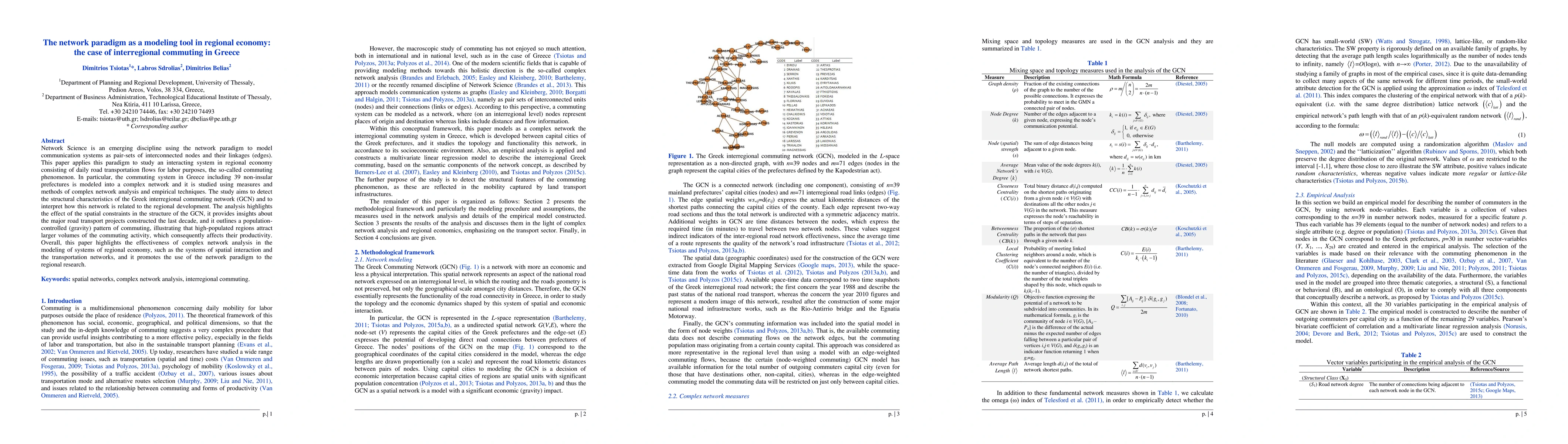 This paper applies network science to model Greece's interregional commuting system as a complex network, revealing its structural characteristics and linking them to regional development. The study emphasizes the impact of spatial constraints and high-populated regions on commuting patterns and productivity.