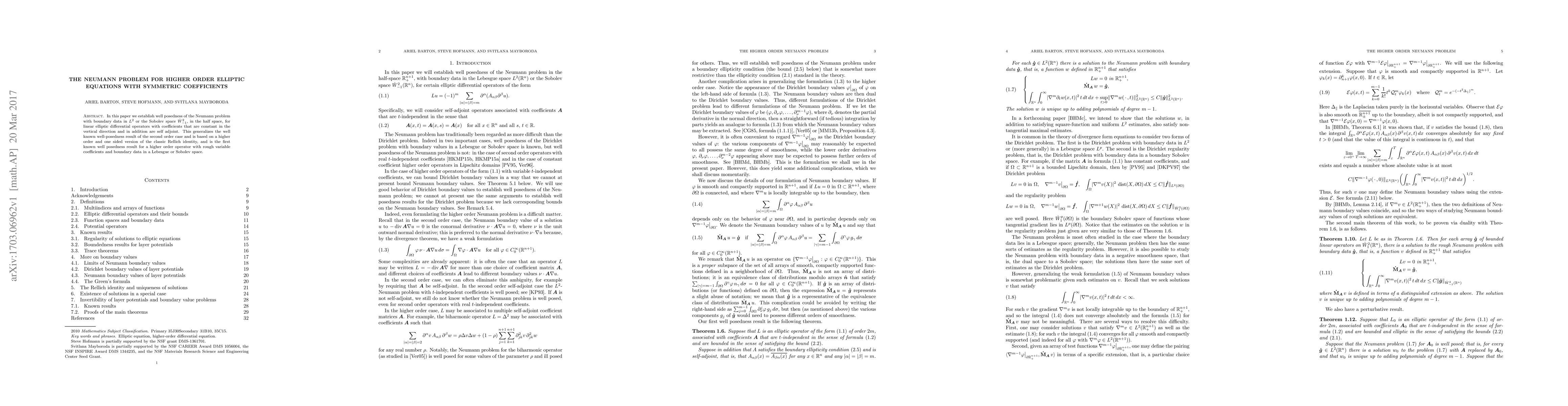 In this paper we establish well posedness of the Neumann problem with boundary data in $L^2$ or the Sobolev space $\dot W^2_{-1}$, in the half space, for linear elliptic differential operators with coefficients that are constant in the vertical direction and in addition are self adjoint. This generalizes the well known well-posedness result of the second order case and is based on a higher order and one sided version of the classic Rellich identity, and is the first known well posedness result for a higher order operator with rough variable coefficients and boundary data in a Lebesgue or Sobolev space.