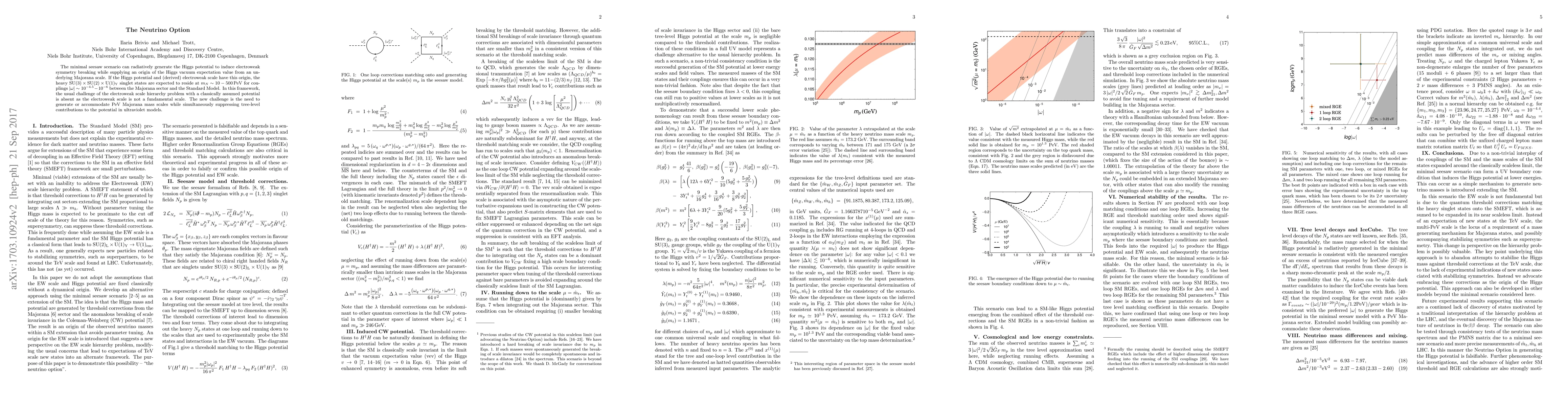 The minimal seesaw scenario can radiatively generate the Higgs potential to induce electroweak symmetry breaking while supplying an origin of the Higgs vacuum expectation value from an underlying Majorana scale. If the Higgs potential and (derived) electroweak scale have this origin, the heavy $\rm SU(3) \times SU(2) \times U(1)_Y$ singlet states are expected to reside at $m_N \sim 10-500 \, {\rm PeV} $ for couplings $|\omega| \sim 10^{-4.5}-10^{-6}$ between the Majorana sector and the Standard Model. In this framework, the challenge of the electroweak scale hierarchy problem is replaced with a need to generate or accommodate PeV Majorana mass scales in ultraviolet models; the usual hierarchy problem is absent as the electroweak scale is not a fundamental scale.