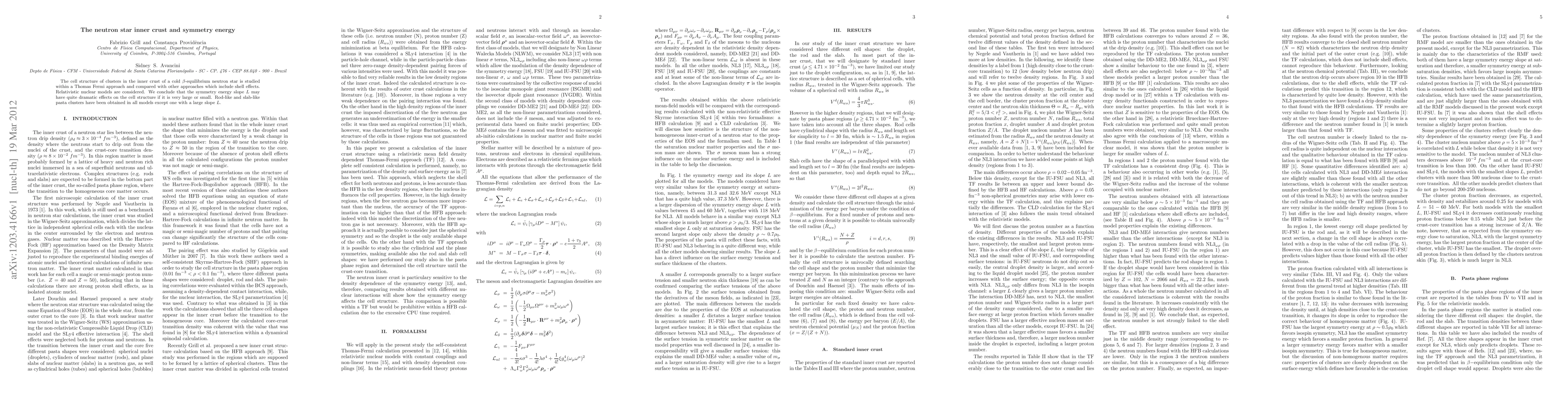 The cell structure of clusters in the inner crust of a cold \beta-equilibrium neutron star is studied within a Thomas Fermi approach and compared with other approaches which include shell effects. Relativistic nuclear models are considered. We conclude that the symmetry energy slope L may have quite dramatic effects on the cell structure if it is very large or small. Rod-like and slab-like pasta clusters have been obtained in all models except one with a large slope L.