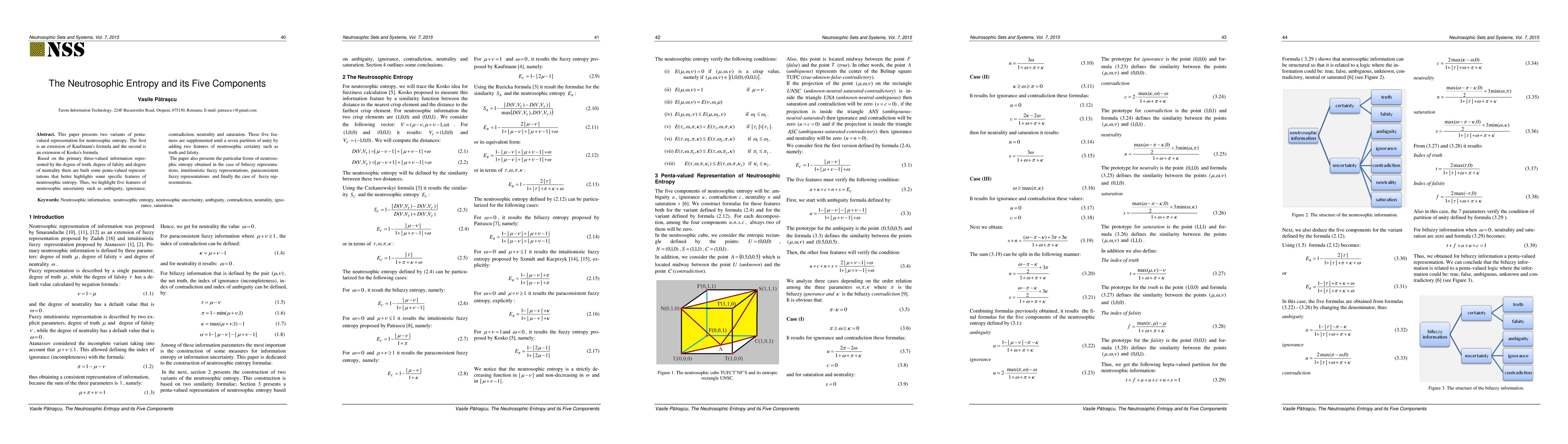This paper introduces two variants of penta-valued representations for neutrosophic entropy, extending Kaufmann's and Kosko's formulas. It highlights five features of neutrosophic uncertainty, supplemented by two features of neutrosophic certainty, and discusses their forms in various fuzzy representations.