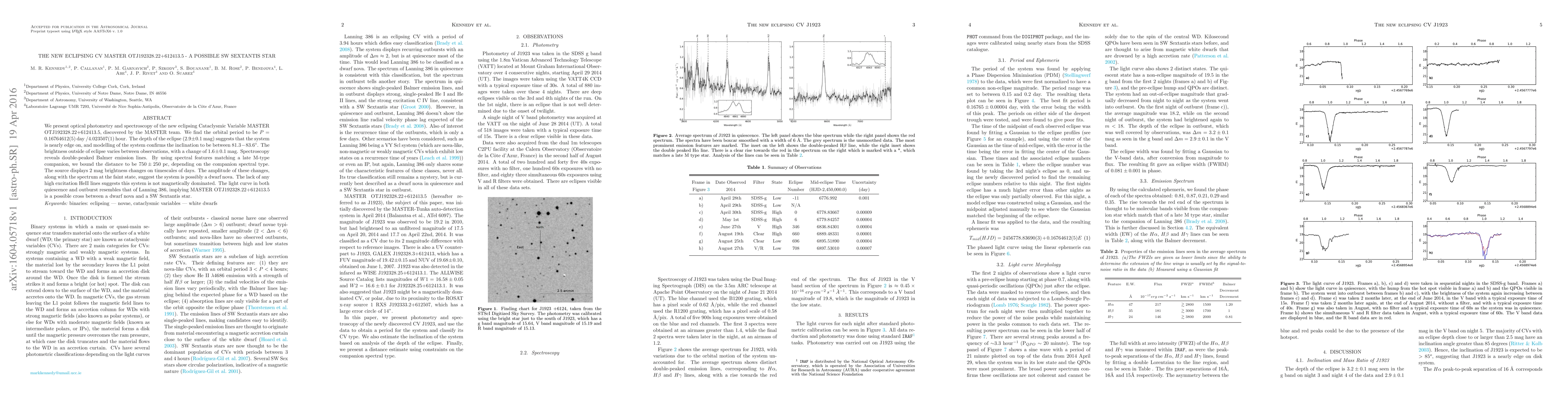 This paper presents optical photometry and spectroscopy of the new eclipsing Cataclysmic Variable MASTER OTJ192328.22+612413.5, revealing it as a possible SW Sextantis star with a 0.16764612 day orbital period and double-peaked Balmer emission lines, suggesting it may be a hybrid dwarf nova.