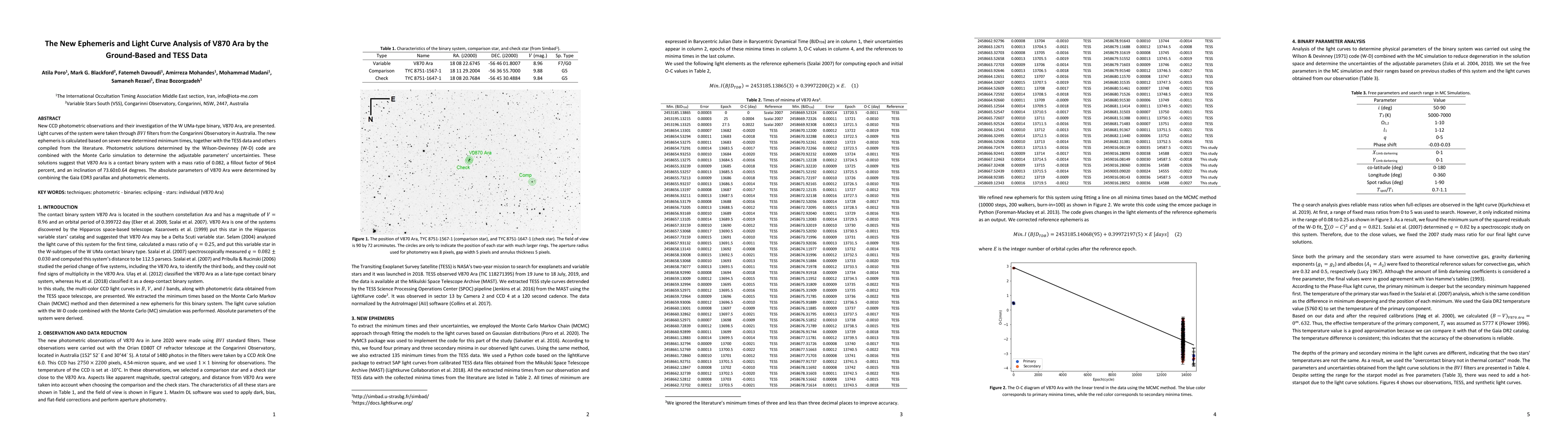 This paper presents new photometric observations of V870 Ara, a W UMa-type binary system, using ground-based data from Australia and TESS data. The study finds that V870 Ara is a contact binary with specific mass ratio, fillout factor, and inclination parameters.