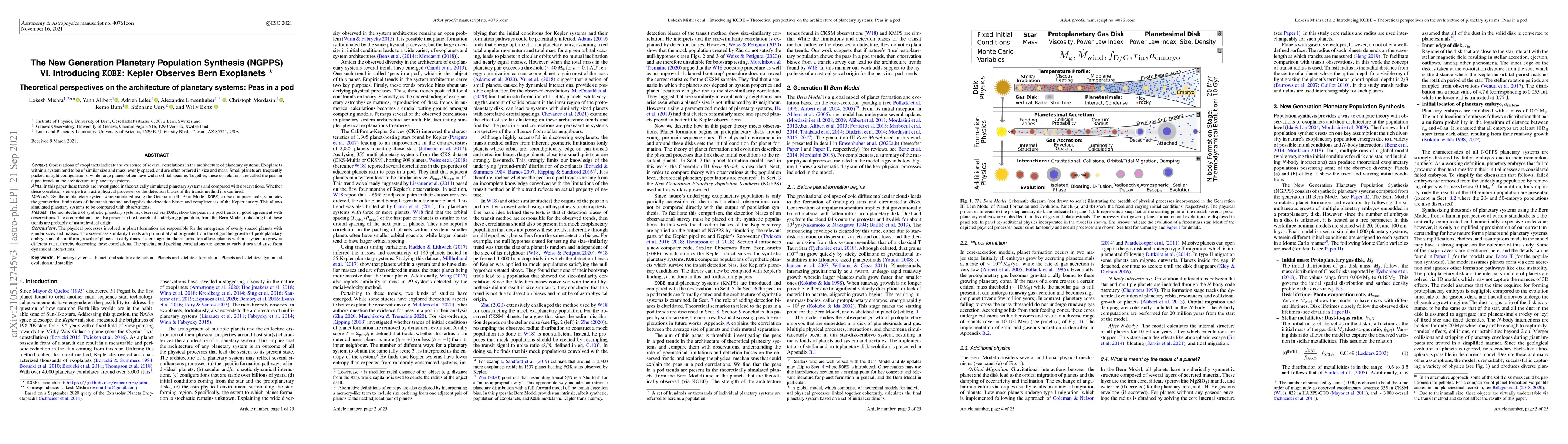 This paper investigates the "peas in a pod" trends in exoplanetary systems through theoretical simulations and compares them with observational data. Using the new KOBE code, the study finds that these trends likely originate from astrophysical processes rather than detection biases, indicating that planet formation mechanisms lead to evenly spaced, similarly sized planets.