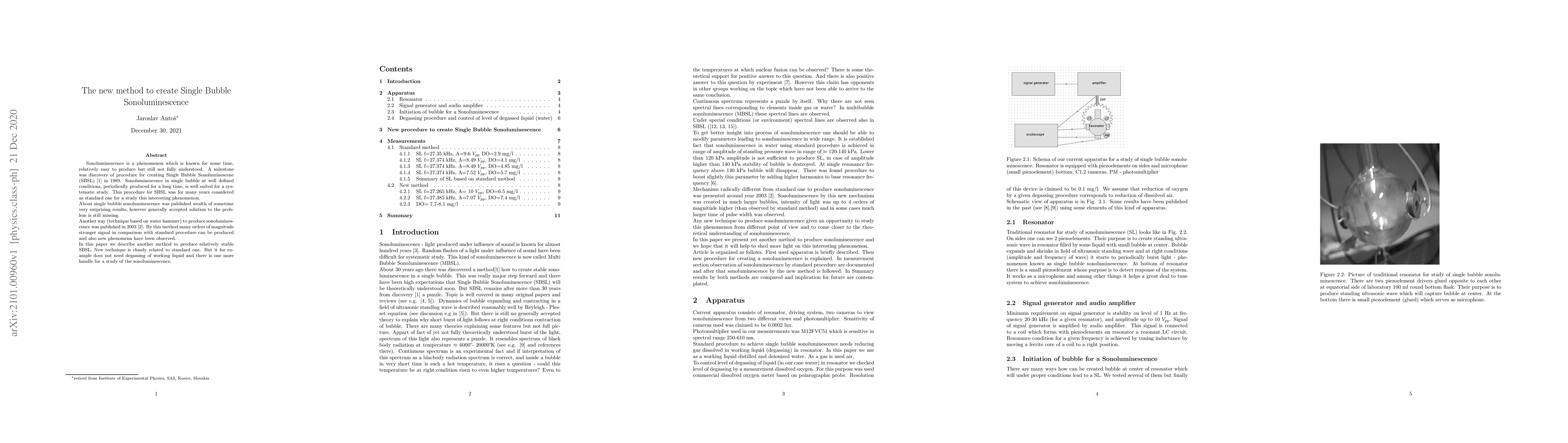 Researchers have developed a new method to create Single Bubble Sonoluminescence (SBSL) that avoids degassing of working liquid and offers additional study possibilities.