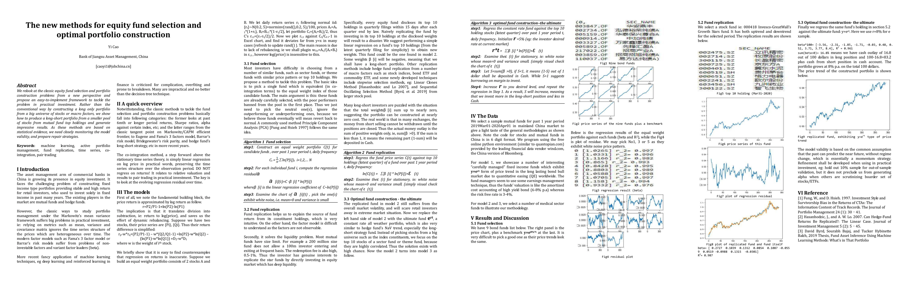We relook at the classic equity fund selection and portfolio construction problems from a new perspective and propose an easy-to-implement framework to tackle the problem in practical investment. Rather than the conventional way by constructing a long only portfolio from a big universe of stocks or macro factors, we show how to produce a long-short portfolio from a smaller pool of stocks from mutual fund top holdings and generate impressive results. As these methods are based on statistical evidence, we need closely monitoring the model validity, and prepare repair strategies.
