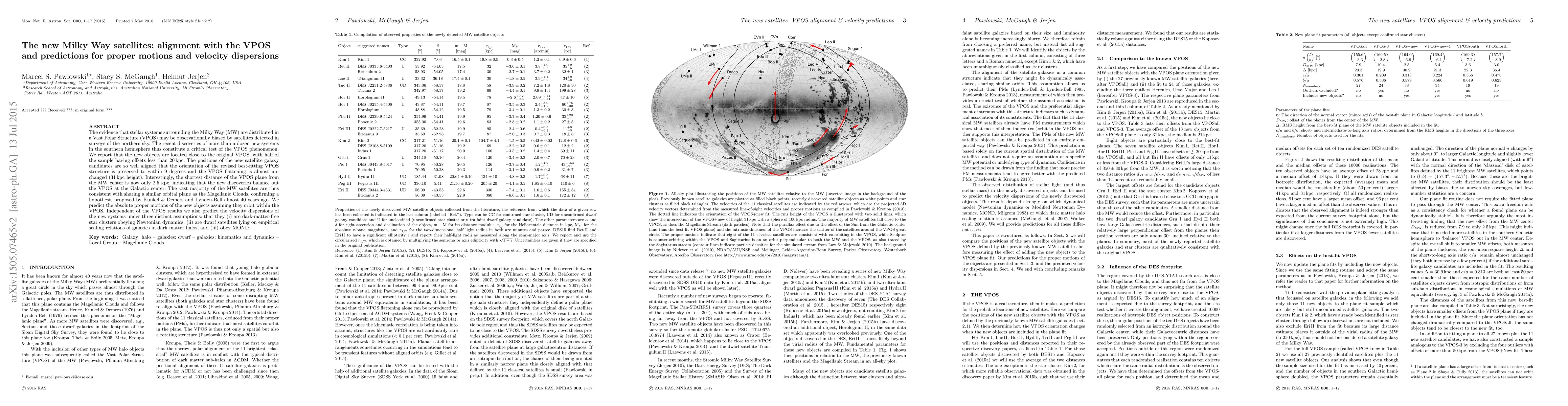 The new Milky Way satellite galaxies discovered in the southern hemisphere align closely with the original Vast Polar Structure (VPOS), preserving its orientation and flattening. Predictions for their proper motions and velocity dispersions under various dynamical assumptions are also provided.