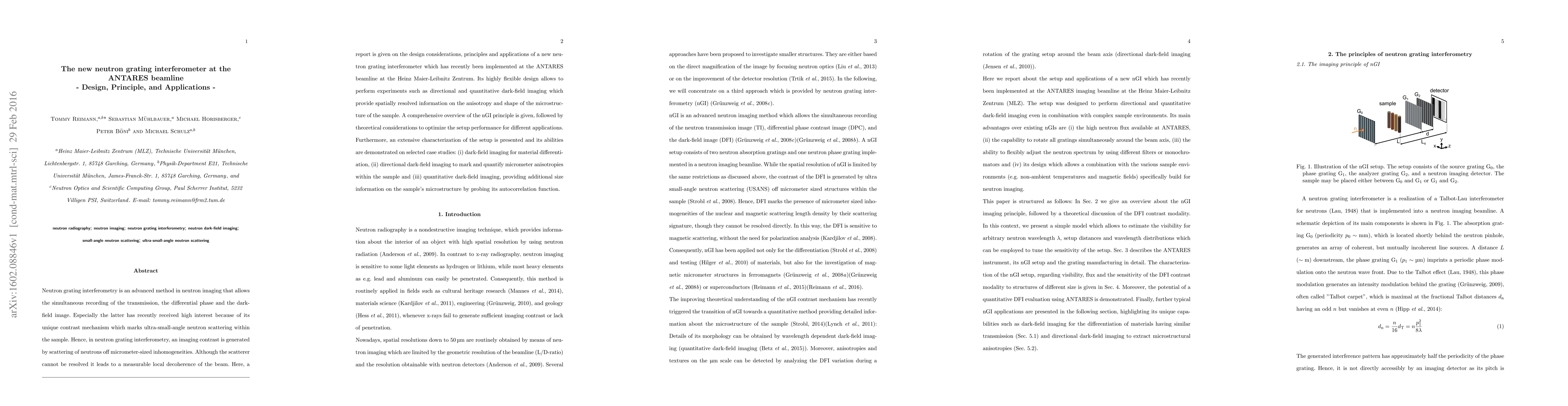 Neutron grating interferometry is an advanced method in neutron imaging that allows the simultaneous recording of the transmission, the differential phase and the dark-field image. Especially the latter has recently received high interest because of its unique contrast mechanism which marks ultra-small-angle neutron scattering within the sample. Hence, in neutron grating interferometry, an imaging contrast is generated by scattering of neutrons off micrometer-sized inhomogeneities. Although the scatterer cannot be resolved it leads to a measurable local decoherence of the beam. Here, a report is given on the design considerations, principles and applications of a new neutron grating interferometer which has recently been implemented at the ANTARES beamline at the Heinz Maier-Leibnitz Zentrum. Its highly flexible design allows to perform experiments such as directional and quantitative dark-field imaging which provide spatially resolved information on the anisotropy and shape of the microstructure of the sample. A comprehensive overview of the nGI principle is given, followed by theoretical considerations to optimize the setup performance for different applications. Furthermore, an extensive characterization of the setup is presented and its abilities are demonstrated on selected case studies: (i) dark-field imaging for material differentiation, (ii) directional dark-field imaging to mark and quantify micrometer anisotropies within the sample and (iii) quantitative dark-field imaging, providing additional size information on the sample's microstructure by probing its autocorrelation function.