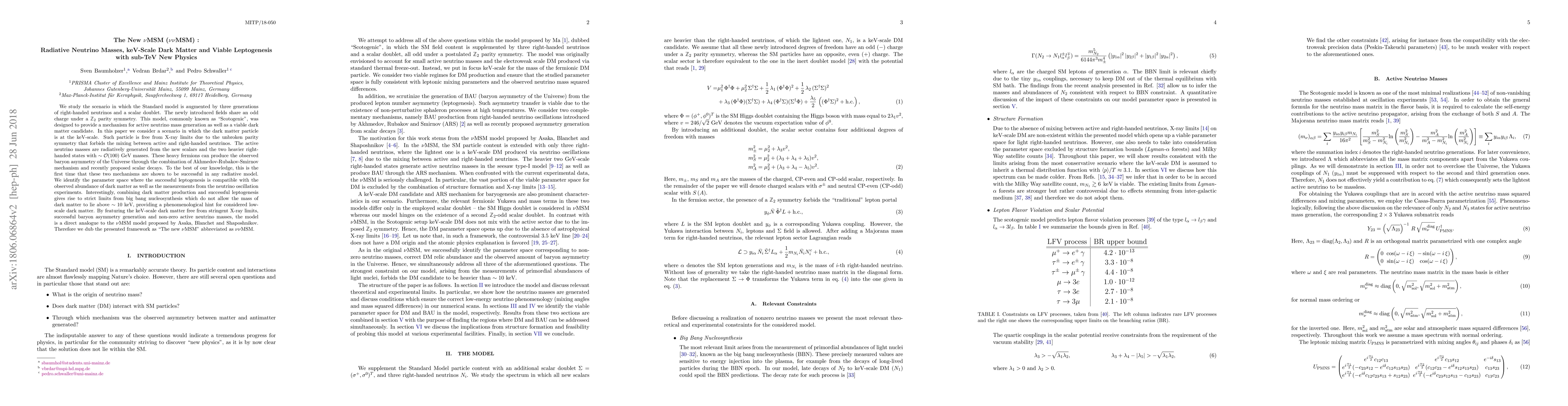 We study the scenario in which the Standard model is augmented by three generations of right-handed neutrinos and a scalar doublet. The newly introduced fields share an odd charge under a $\mathbb{Z}_2$ parity symmetry. This model, commonly known as "Scotogenic", was designed to provide a mechanism for active neutrino mass generation as well as a viable dark matter candidate. In this paper we consider a scenario in which the dark matter particle is at the keV-scale. Such particle is free from X-ray limits due to the unbroken parity symmetry that forbids the mixing between active and right-handed neutrinos. The active neutrino masses are radiatively generated from the new scalars and the two heavier right-handed states with $\sim \mathcal{O}(100)$ GeV masses. These heavy fermions can produce the observed baryon asymmetry of the Universe through the combination of Akhmedov-Rubakov-Smirnov mechanism and recently proposed scalar decays. To the best of our knowledge, this is the first time that these two mechanisms are shown to be successful in any radiative model. We identify the parameter space where the successful leptogenesis is compatible with the observed abundance of dark matter as well as the measurements from the neutrino oscillation experiments. Interestingly, combining dark matter production and successful leptogenesis gives rise to strict limits from big bang nucleosynthesis which do not allow the mass of dark matter to lie above $\sim 10$ keV, providing a phenomenological hint for considered low-scale dark matter. By featuring the keV-scale dark matter free from stringent X-ray limits, successful baryon asymmetry generation and non-zero active neutrino masses, the model is a direct analogue to the $\nu$MSM model proposed by Asaka, Blanchet and Shaposhnikov. Therefore we dub the presented framework as "The new $\nu$MSM" abbreviated as $\nu\nu$MSM.