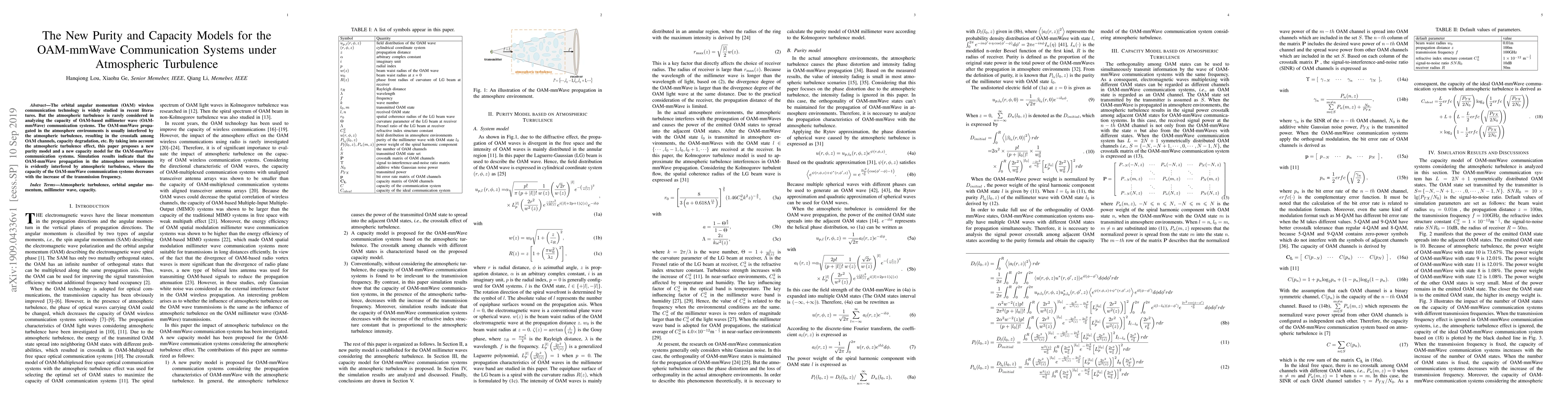 This paper proposes new purity and capacity models for OAM-mmWave communication systems, considering atmospheric turbulence effects. Simulation results show that atmospheric turbulence significantly degrades OAM-mmWave capacity, especially with higher transmission frequencies.