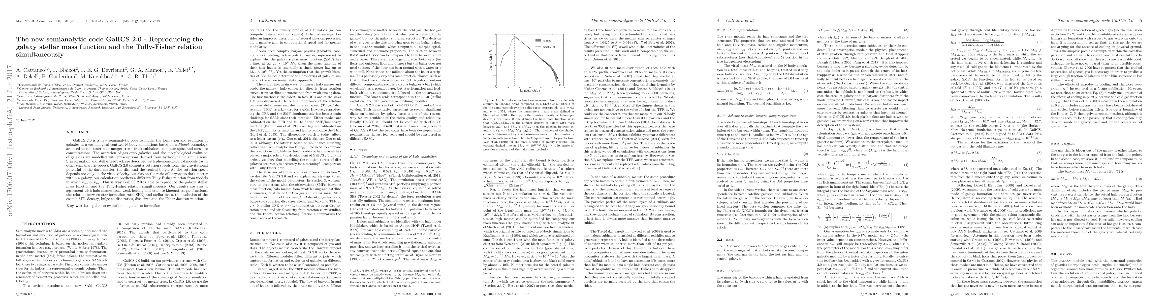 GalICS 2.0 is a new semianalytic code that models galaxy formation and evolution, successfully reproducing both the galaxy stellar mass function and the Tully-Fisher relation by incorporating the ratio of baryons to dark matter in rotation speed calculations. This approach aligns with observational data across various galaxy properties.