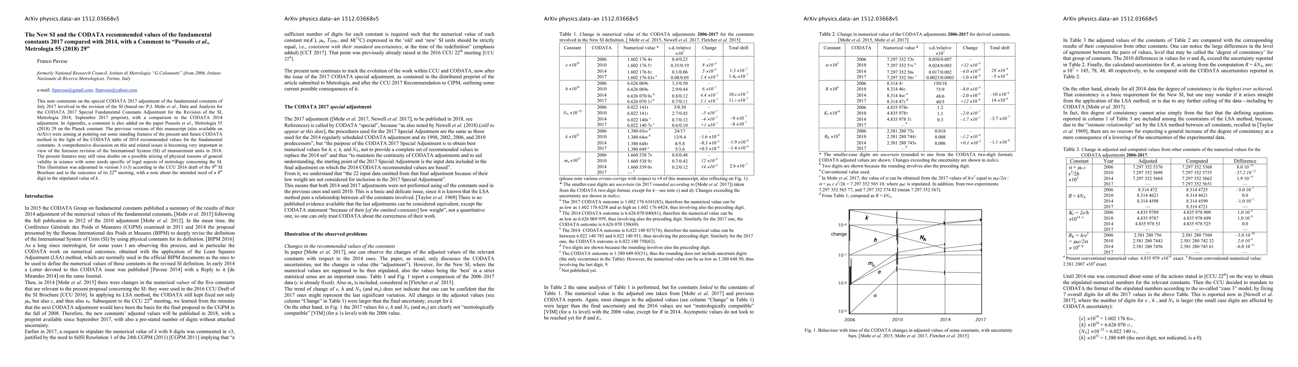 This note comments on the special CODATA 2017 adjustment of the fundamental constants of July 2017 involved in the revision of the SI (based on: P.J. Mohr et al., Data and Analysis for the CODATA 2017 Special Fundamental Constants Adjustment for the Revision of the SI, Metrologia 2018, September 2017 preprint), with a comparison to the CODATA 2014 adjustment. In Appendix, a comment is also added on the paper Possolo et al., Metrologia 55 (2018) 29 on the Planck constant. The previous versions of this manuscript (also available on ArXiv) were aiming at pointing out some standing features of the present and future CODATA method in the light of the CODATA table of 2014 recommended values for the fundamental constants. A comprehensive discussion on this and related issues is becoming very important in view of the foreseen revision of the International System (SI) of measurement units in 2018. The present features may still raise doubts on a possible mixing of physical reasons of general validity in science with some needs specific of legal aspects of metrology concerning the SI. This illustration was adjourned in version 3 (v3) according to the CCU 2016 draft of the 9th SI Brochure and to the outcomes of its 22th meeting, with a note about the intended need of a 8th digit in the stipulated value of k.