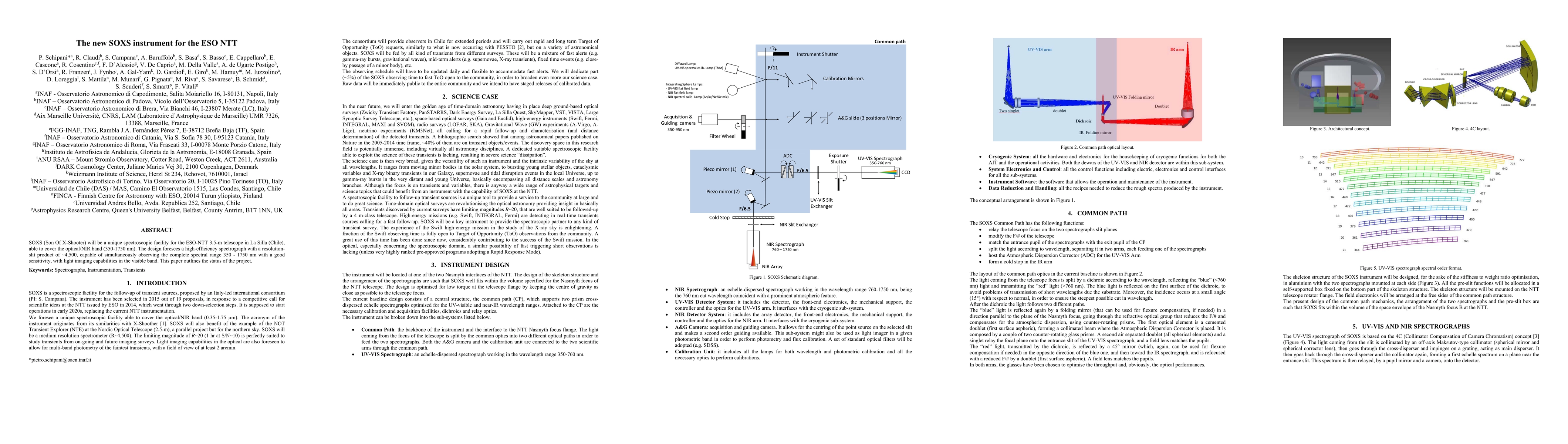 SOXS, a new spectroscopic instrument for the ESO-NTT, aims to cover the optical/NIR band from 350 to 1750 nm with high efficiency and resolution. The project is currently underway, focusing on its design and implementation.