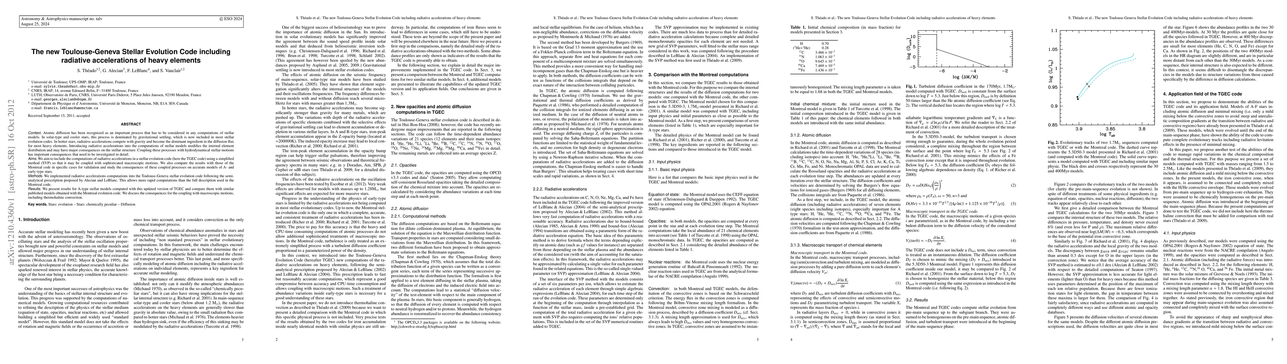 This paper introduces an updated version of the Toulouse-Geneva Stellar Evolution Code (TGEC) that includes radiative accelerations for heavy elements, which are crucial in hotter stars. The authors compare their results with the Montreal code and discuss the impact on A-type stars and their coupling with macroscopic stellar motions.