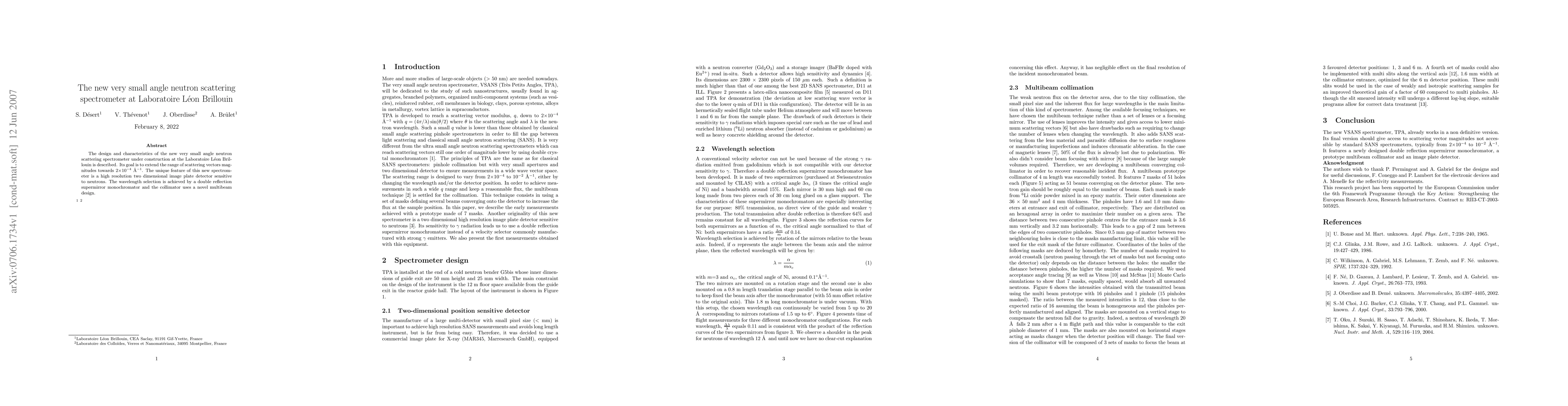The new very small angle neutron scattering spectrometer at Laboratoire Léon Brillouin aims to extend the scattering vector range to 2x10^-4 /Å, featuring a high-resolution two-dimensional image plate detector, a double reflection supermirror monochromator, and an innovative multibeam collimator design.