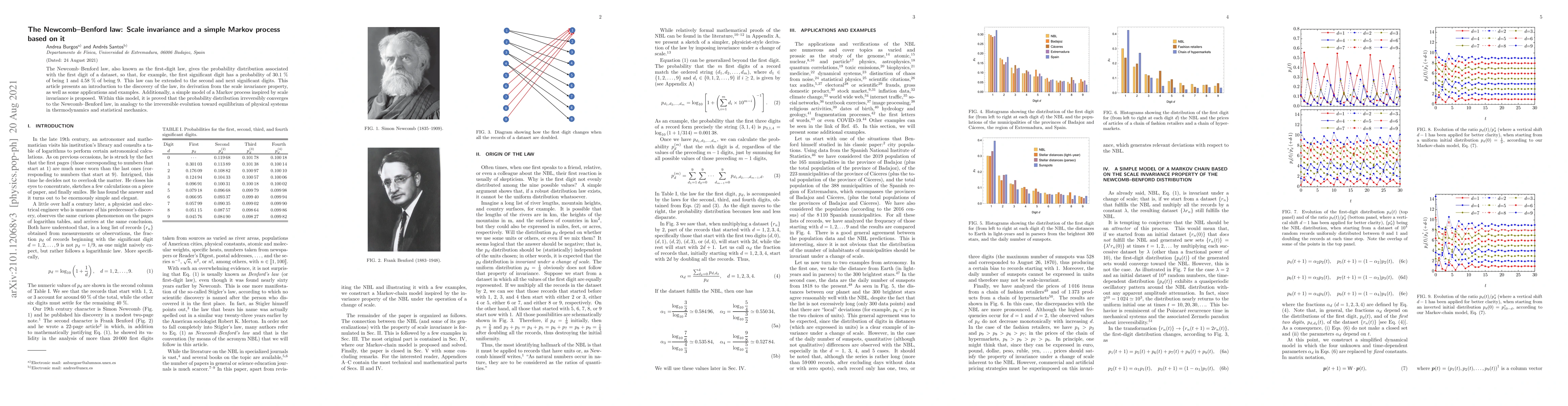 The Newcomb-Benford law describes the probability distribution of leading digits in datasets, derived from scale invariance. A Markov process model inspired by this property demonstrates its convergence to the law, akin to thermodynamic equilibrium.