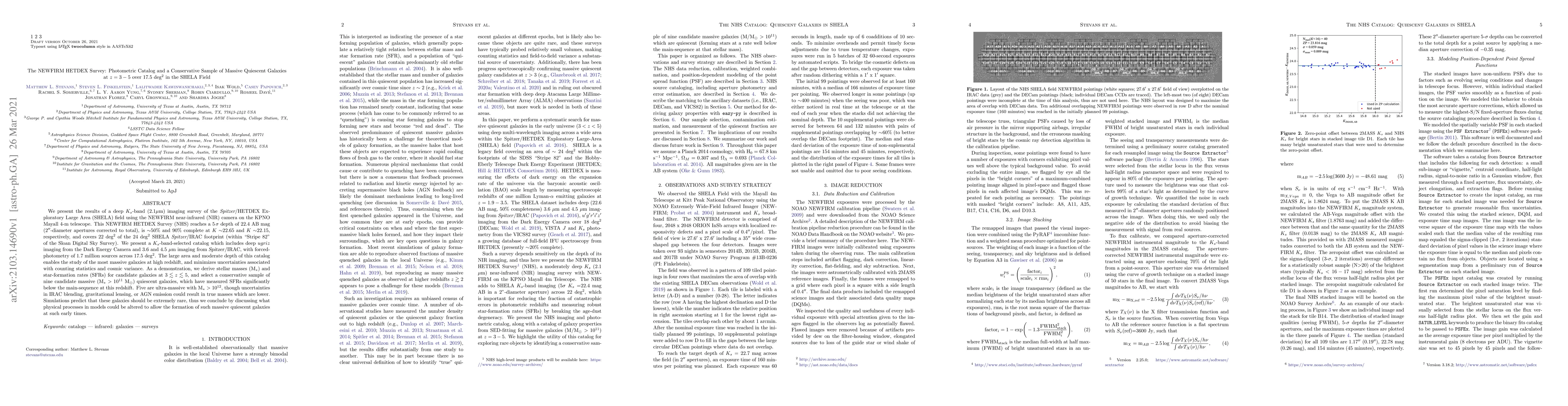 The NEWFIRM HETDEX Survey presents a deep K_s-band catalog from the SHELA field, identifying nine massive quiescent galaxies at z=3-5. The survey's large area and moderate depth allow for the study of rare, ultra-massive galaxies, raising questions about their formation mechanisms.
