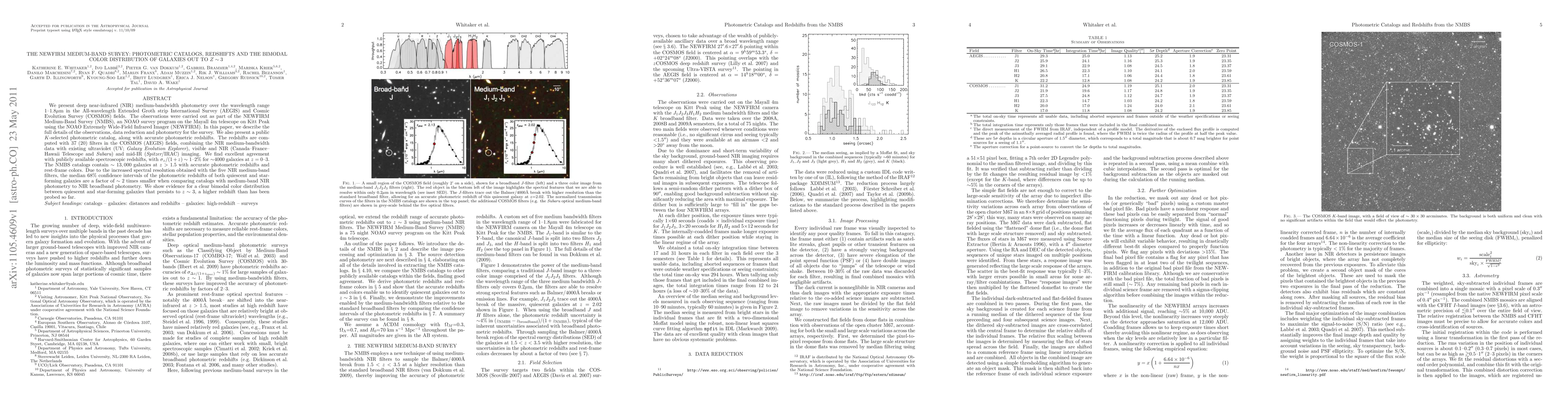 This paper details a deep near-infrared medium-band survey using the NEWFIRM instrument, presenting a photometric catalog and accurate redshifts for ~13,000 galaxies at z>1.5, revealing a clear bimodal color distribution between quiescent and star-forming galaxies extending to z~3.