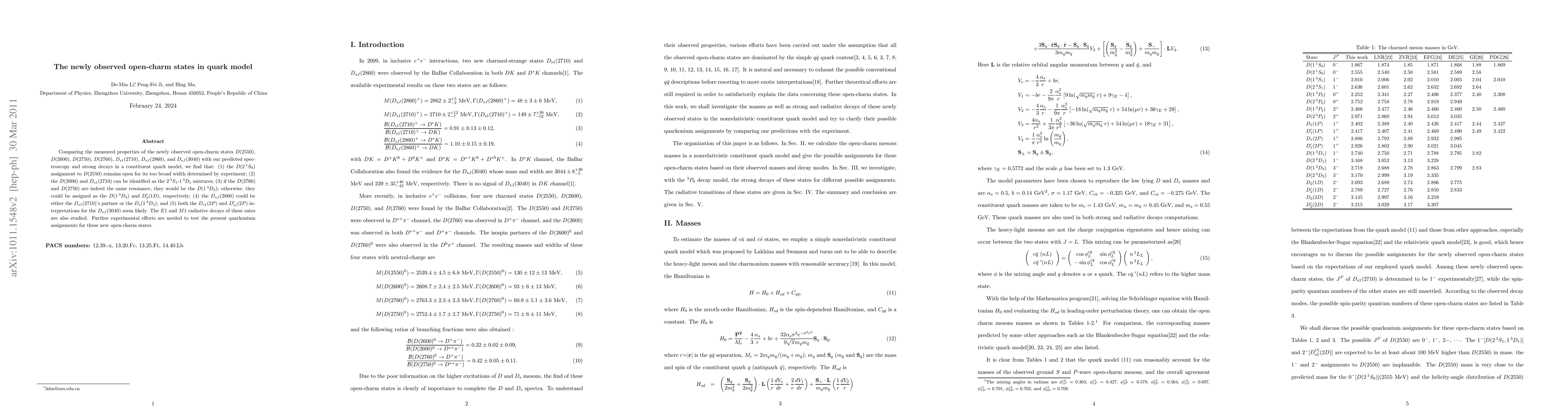 Newly observed open-charm states have been analyzed in a constituent quark model, revealing mixtures of different resonances and suggesting further experimental efforts to confirm the assignments.