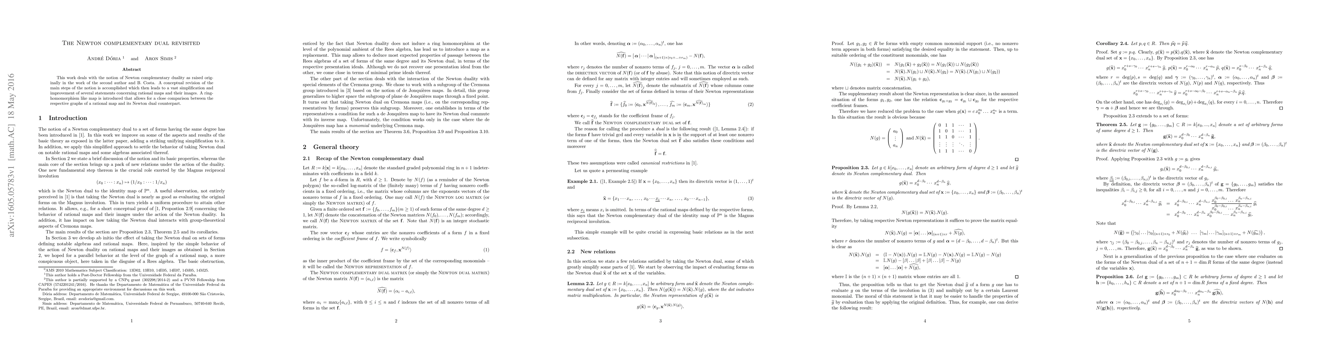 This work deals with the notion of Newton complementary duality as raised originally in the work of the second author and B. Costa. A conceptual revision of the main steps of the notion is accomplished which then leads to a vast simplification and improvement of several statements concerning rational maps and their images. A ring-homomorphism like map is introduced that allows for a close comparison between the respective graphs of a rational map and its Newton dual counterpart.