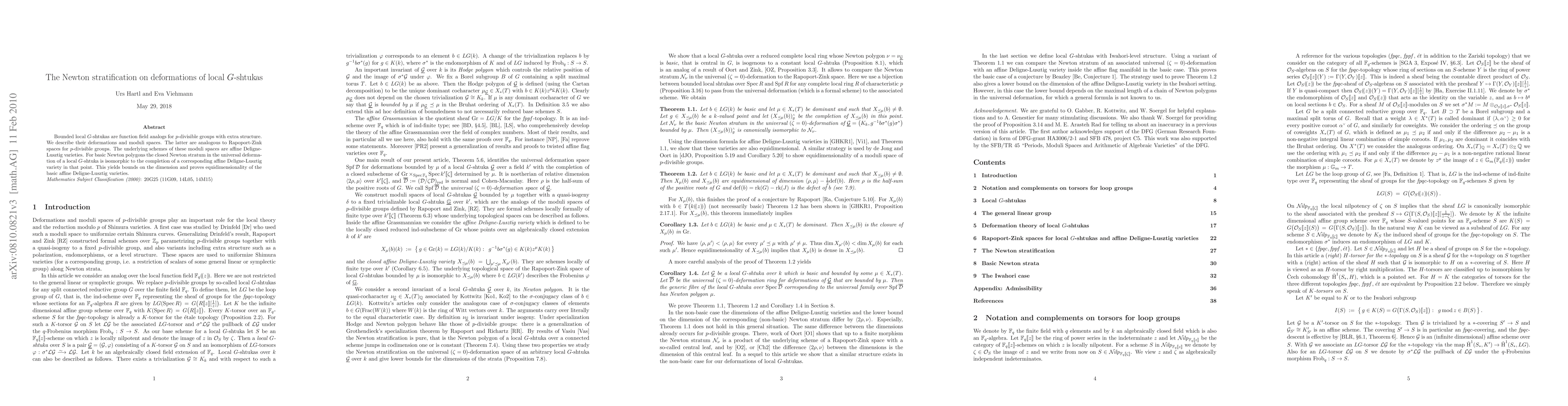 Bounded local G-shtukas are function field analogs for p-divisible groups with extra structure. We describe their deformations and moduli spaces. The latter are analogous to Rapoport-Zink spaces for p-divisible groups. The underlying schemes of these moduli spaces are affine Deligne-Lusztig varieties. For basic Newton polygons the closed Newton stratum in the universal deformation of a local G-shtuka is isomorphic to the completion of a corresponding affine Deligne-Lusztig variety in that point. This yields bounds on the dimension and proves equidimensionality of the basic affine Deligne-Lusztig varieties.