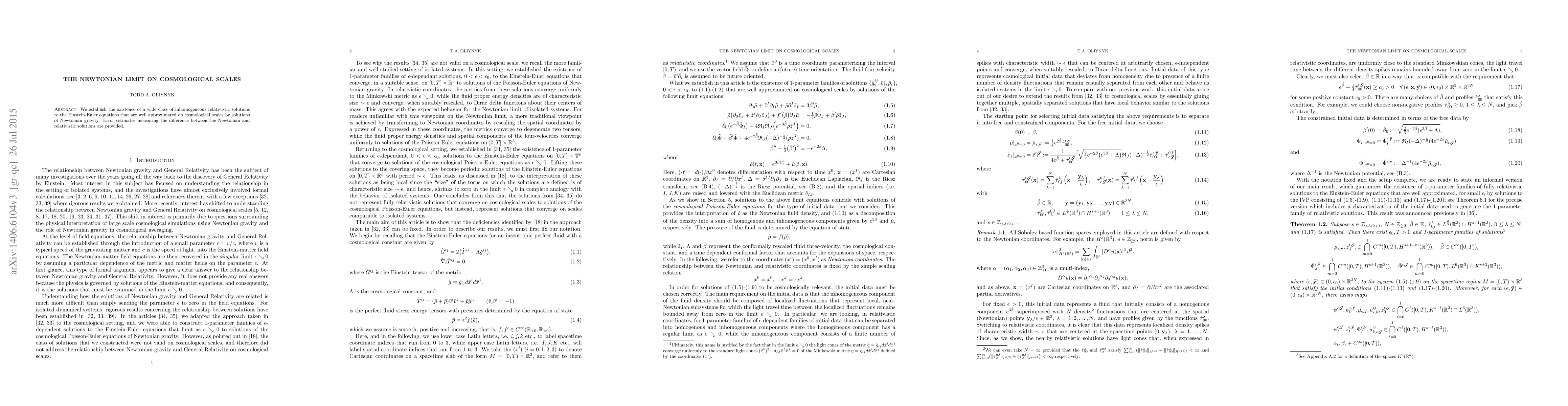 This paper explores a wide class of relativistic solutions to the Einstein-Euler equations that closely approximate Newtonian gravity on cosmological scales, providing error estimates for the differences between the two.