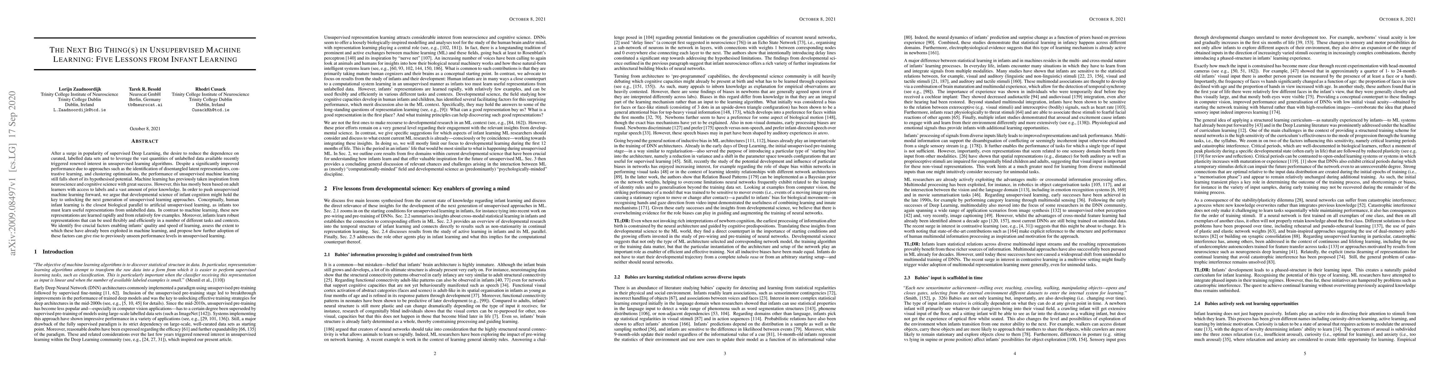 This paper explores how insights from infant learning can advance unsupervised machine learning, identifying five key factors that enable rapid and robust learning from unlabelled data. It argues that these factors, which have been largely untapped in current machine learning approaches, could significantly enhance the performance of unsupervised algorithms.