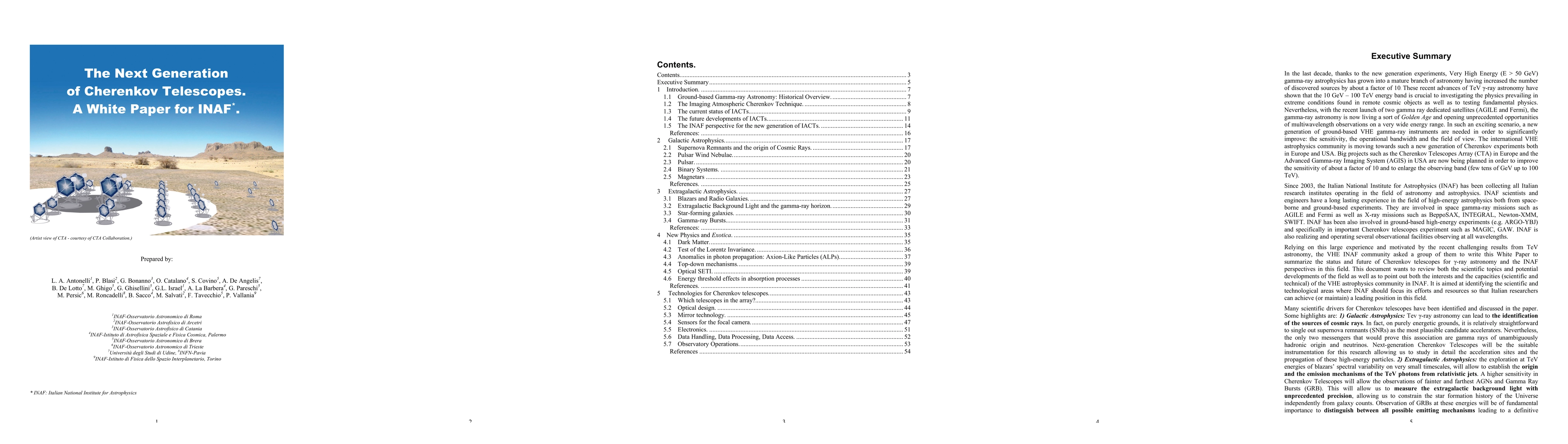 Motivated by the recent challenging results from TeV astronomy, the VHE INAF community asked a group of them to write this White Paper to summarize the status and future of Cherenkov telescopes for gamma-ray astronomy and the INAF perspectives in this field. This document wants to review both the scientific topics and potential developments of the field as well as to point out both the interests and the capacities (scientific and technical) of the VHE astrophysics community in INAF. It is aimed at identifying the scientific and technological areas where INAF should focus its efforts and resources so that Italian researchers can achieve (or maintain) a leading position in this field.