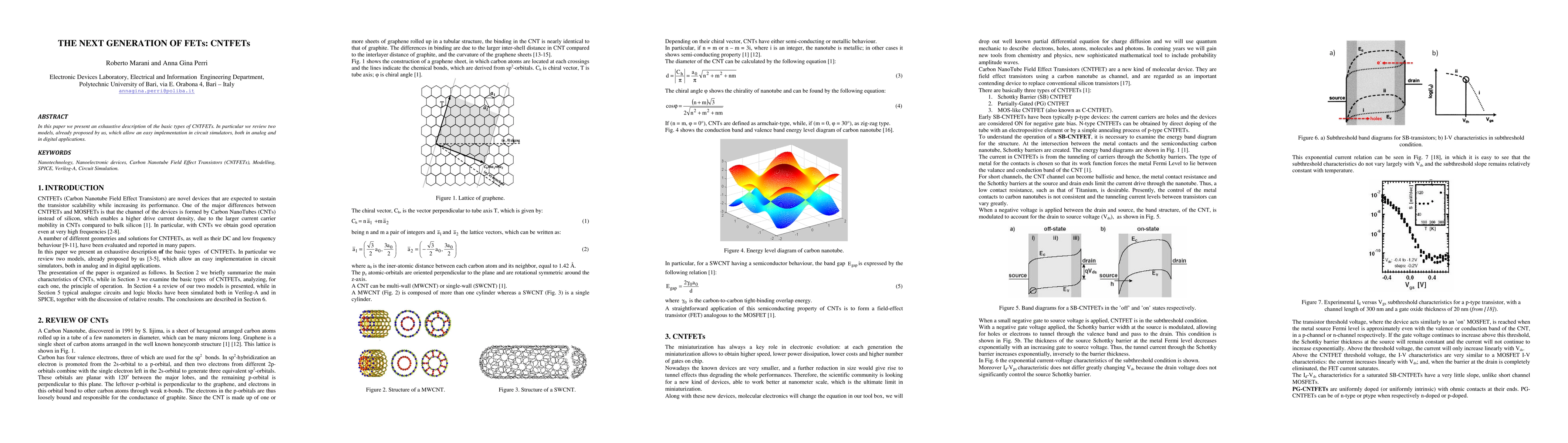 In this paper we present an exhaustive description of the basic types of CNTFETs. In particular we review two models, already proposed by us, which allow an easy implementation in circuit simulators, both in analog and in digital applications.