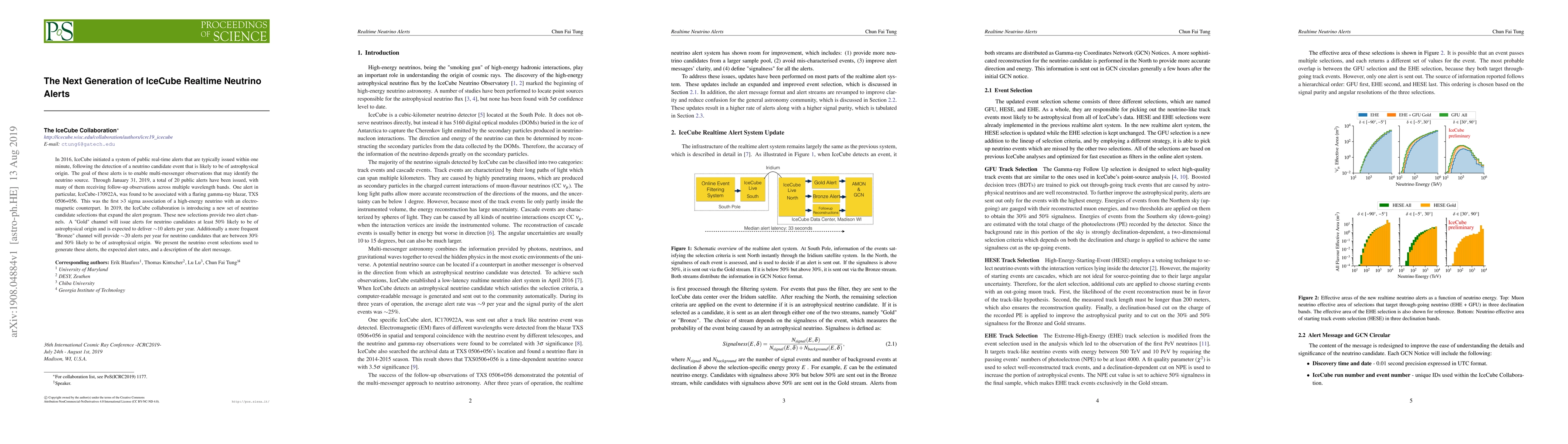 The IceCube collaboration introduces a new neutrino alert system with two channels, one for high-probability astrophysical origins and another for lower probabilities, expanding the multi-messenger capabilities for detecting neutrino sources.