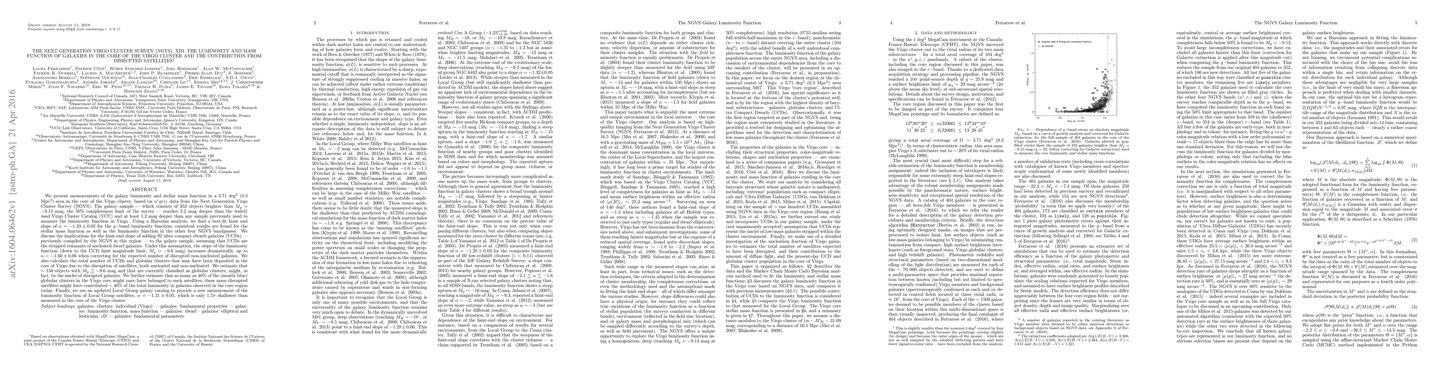 This paper investigates the luminosity and mass functions of galaxies in the Virgo cluster core, revealing a best-fit faint end slope of -1.33. Including ultra compact dwarf galaxies as stripped remnants raises the slope to -1.60, suggesting that disrupted satellites contribute significantly to the cluster's luminosity and may account for up to 40% of the blue globular clusters.