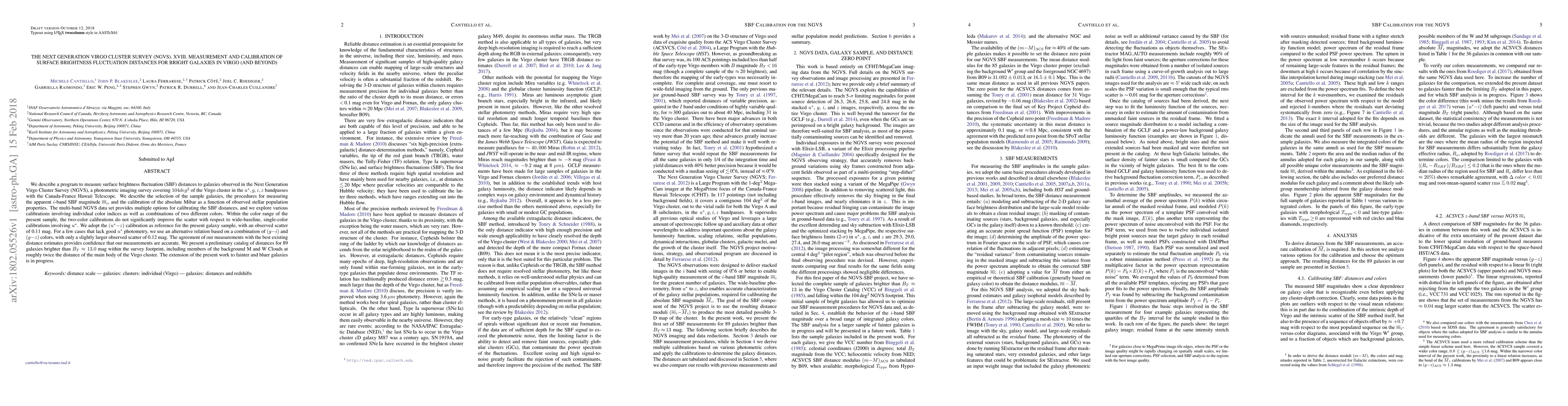 This study measures surface brightness fluctuation distances for galaxies in the Virgo cluster using data from the Next Generation Virgo Cluster Survey, with a focus on calibrating these distances to accurately determine galaxy distances.