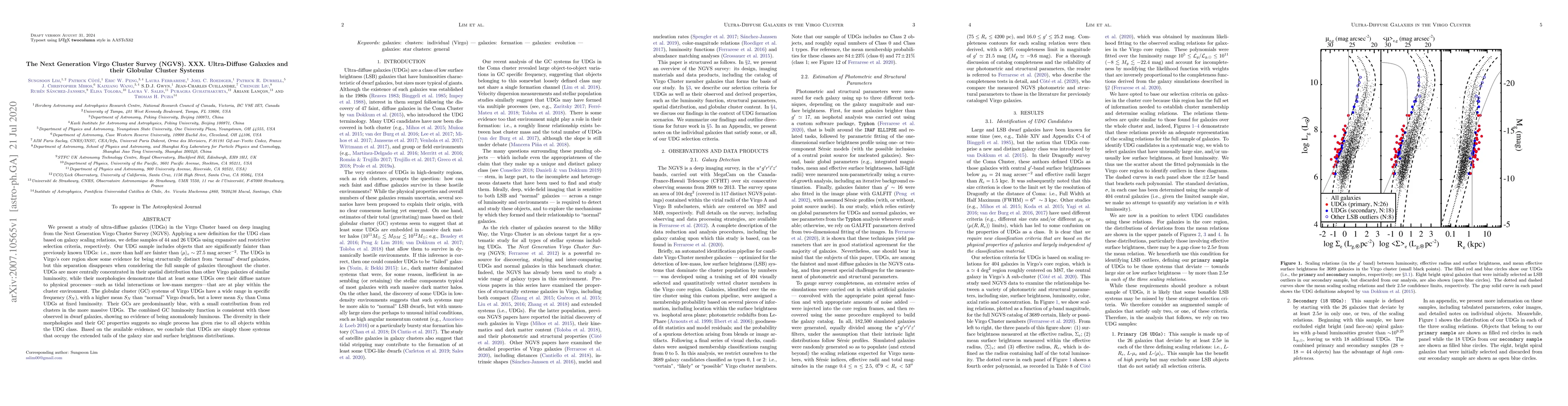 The study identifies and characterizes ultra-diffuse galaxies (UDGs) in the Virgo Cluster using deep imaging from the Next Generation Virgo Cluster Survey (NGVS). Two UDG samples are defined based on scaling relations, with 26 and 44 galaxies selected using expansive and restrictive criteria, respectively.