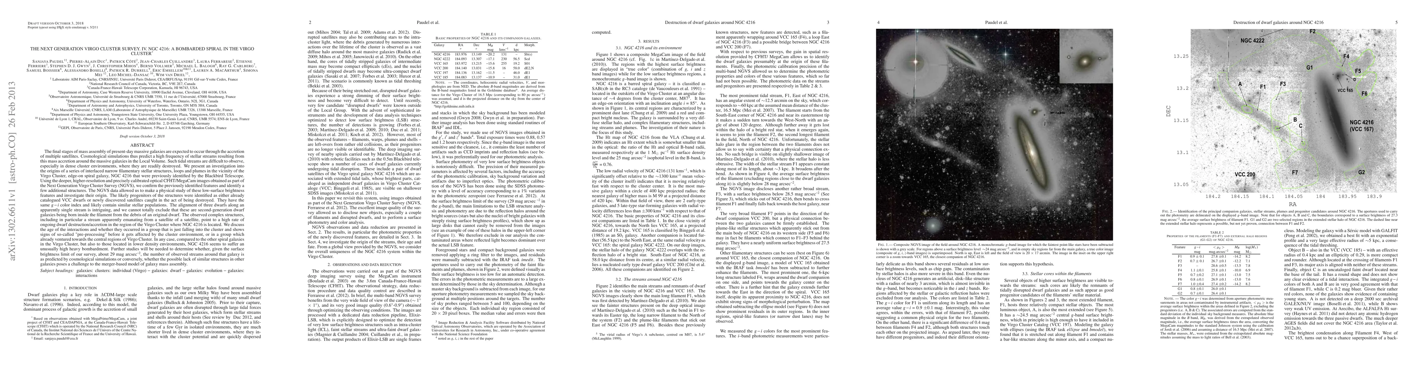 This paper investigates the interlaced stellar structures in NGC 4216, a Virgo Cluster spiral galaxy, using high-resolution NGVS data. The study identifies these structures as likely remnants of dwarf galaxies being destroyed, suggesting a high rate of dwarf destruction/accretion in NGC 4216's vicinity.