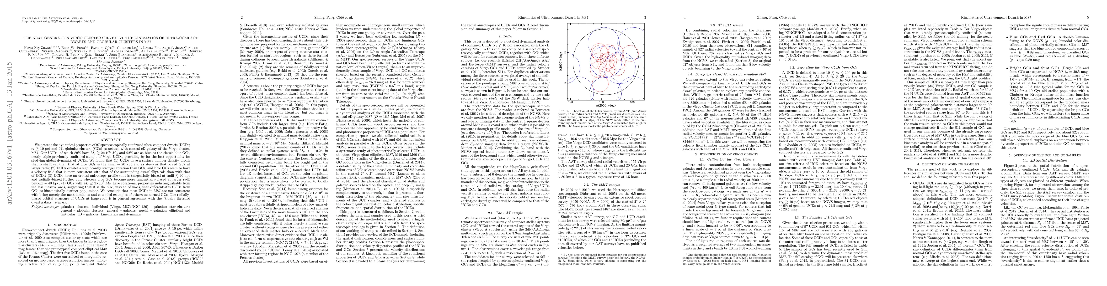 This study investigates 97 ultra-compact dwarfs (UCDs) in M87, finding they have shallower surface number density profiles than blue globular clusters but stronger rotation; UCDs differ from GCs due to size rather than mass.