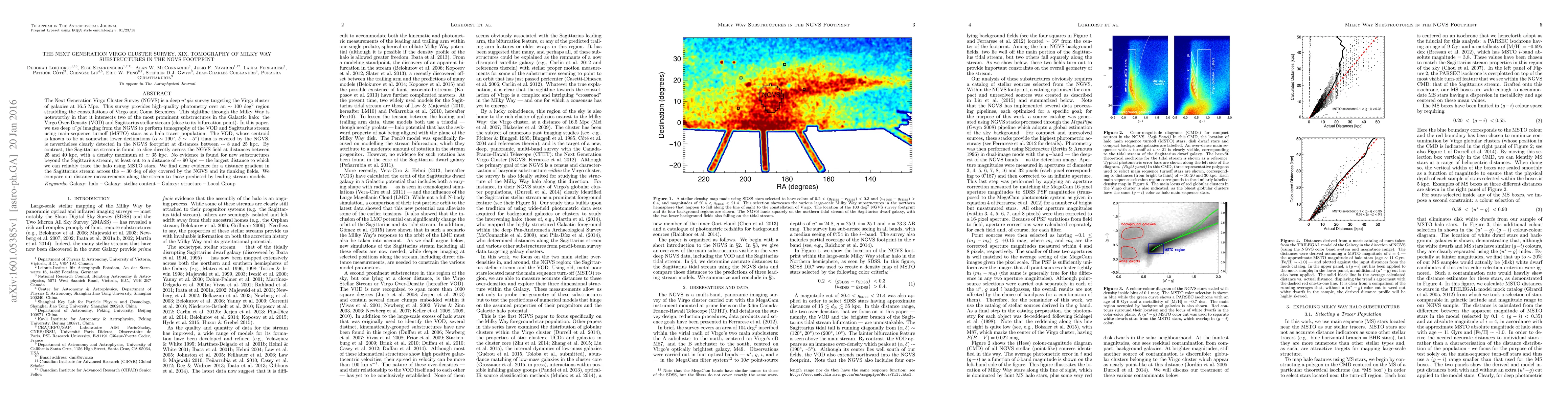 The research utilized deep, multi-band (u*giz) imaging from the Next Generation Virgo Cluster Survey (NGVS) to perform tomography of the Galactic halo in a ~100 deg^2 region towards the Virgo cluster, identifying two prominent structures: the Virgo Over-Density (VOD) and the Sagittarius stellar stream.