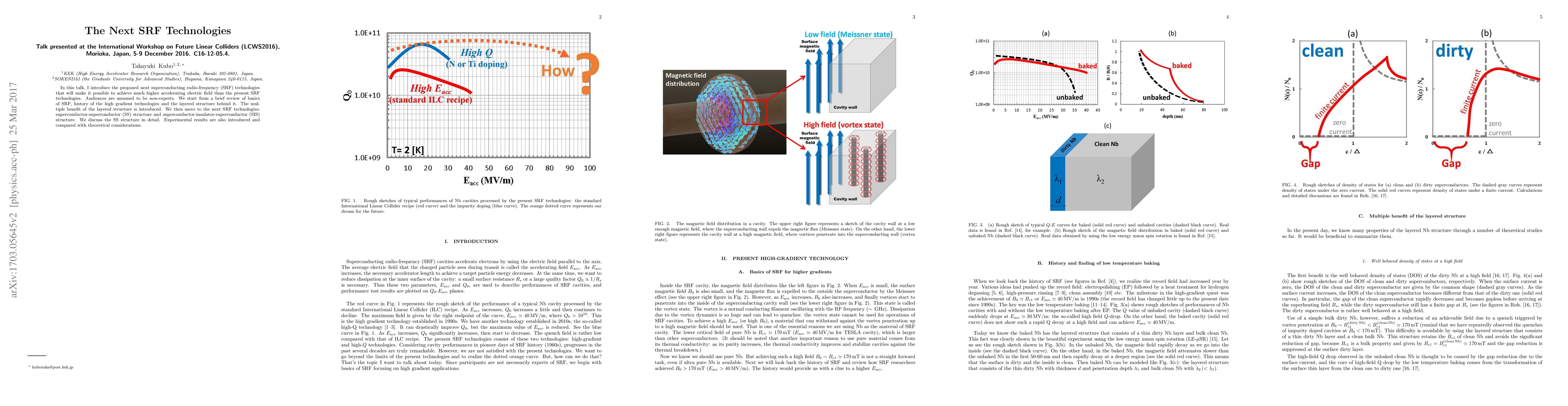 In this talk, I introduce the proposed next superconducting radio-frequency (SRF) technologies that will make it possible to achieve much higher accelerating electric field than the present SRF technologies. Audiences are assumed to be non-experts. We start from a brief review of basics of SRF, history of the high gradient technologies and the layered structure behind it. The multiple benefit of the layered structure is introduced. We then move to the next SRF technologies: superconductor-superconductor (SS) structure and superconductor-insulator-superconductor (SIS) structure. We discuss the SS structure in detail. Experimental results are also introduced and compared with theoretical considerations.
