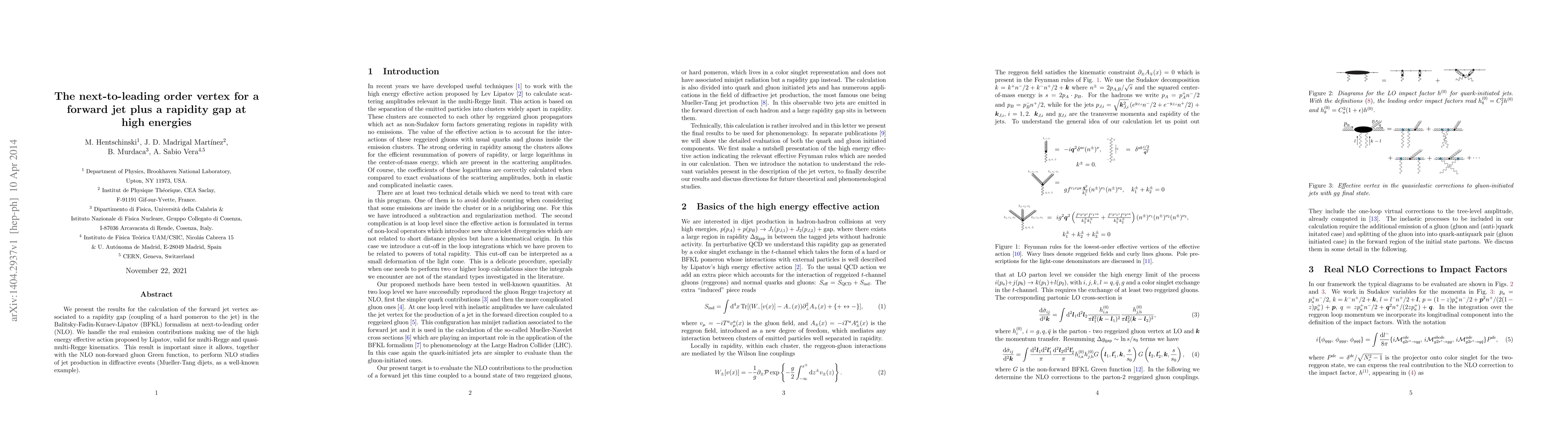 We present the results for the calculation of the forward jet vertex associated to a rapidity gap (coupling of a hard pomeron to the jet) in the Balitsky-Fadin-Kuraev-Lipatov (BFKL) formalism at next-to-leading order (NLO). We handle the real emission contributions making use of the high energy effective action proposed by Lipatov, valid for multi-Regge and quasi-multi-Regge kinematics. This result is important since it allows, together with the NLO non-forward gluon Green function, to perform NLO studies of jet production in diffractive events (Mueller-Tang dijets, as a well-known example).