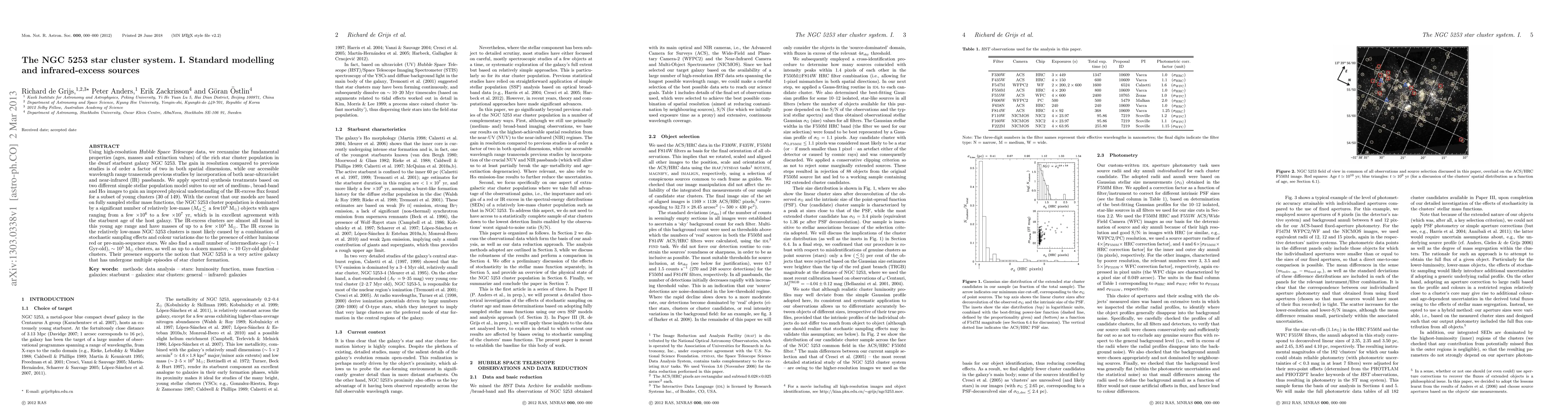 Using high-resolution Hubble Space Telescope data, we reexamine the fundamental properties (ages, masses and extinction values) of the rich star cluster population in the dwarf starburst galaxy NGC 5253. The gain in resolution compared to previous studies is of order a factor of two in both spatial dimensions, while our accessible wavelength range transcends previous studies by incorporation of both near-ultraviolet and near-infrared (IR) passbands. We apply spectral synthesis treatments based on two different simple stellar population model suites to our set of medium-, broad-band and H-alpha images to gain an improved physical understanding of the IR-excess flux found for a subset of young clusters (30 of 149). With the caveat that our models are based on fully sampled stellar mass functions, the NGC 5253 cluster population is dominated by a significant number of relatively low-mass (M_cl <= a few 10^4 Msun) objects with ages ranging from a few x 10^6 to a few x 10^7 yr, which is in excellent agreement with the starburst age of the host galaxy. The IR-excess clusters are almost all found in this young age range and have masses of up to a few x 10^4 Msun. The IR excess in the relatively low-mass NGC 5253 clusters is most likely caused by a combination of stochastic sampling effects and colour variations due to the presence of either luminous red or pre-main-sequence stars. We also find a small number of intermediate-age (~ 1 Gyr-old), ~10^5 Msun clusters, as well as up to a dozen massive, ~10 Gyr-old globular clusters. Their presence supports the notion that NGC 5253 is a very active galaxy that has undergone multiple episodes of star cluster formation.