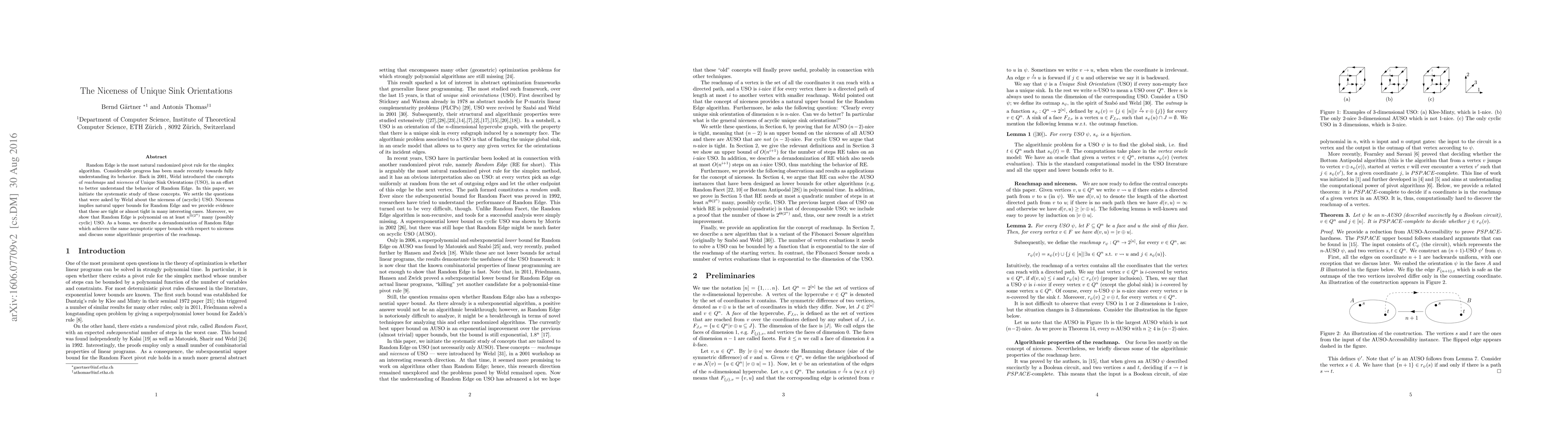 This paper systematically studies the concepts of reachmaps and niceness of Unique Sink Orientations (USO) introduced by Welzl to understand the behavior of Random Edge in the simplex algorithm. It settles questions about the niceness of acyclic USO, showing that Random Edge achieves polynomial performance on many USO, and provides a derandomization achieving similar bounds.