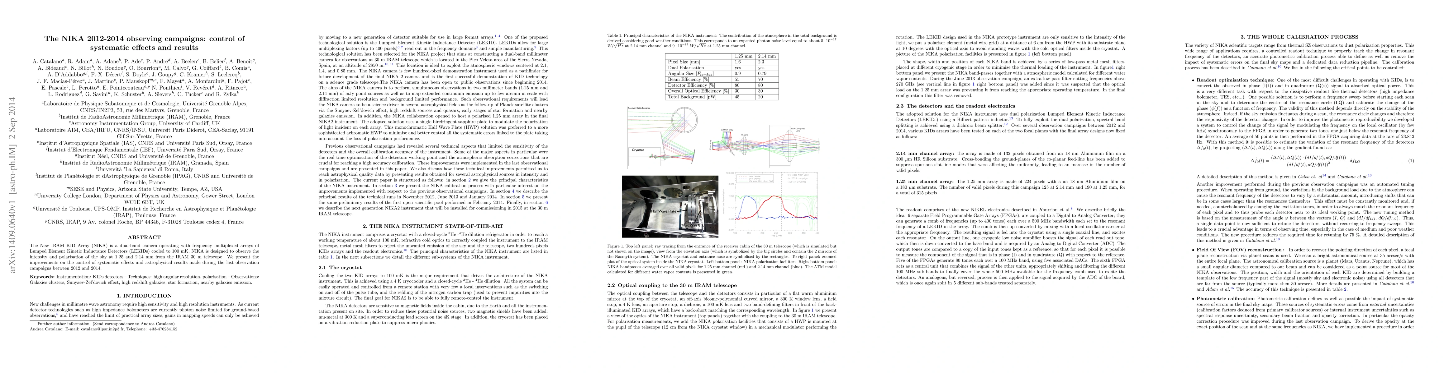 The NIKA 2012-2014 campaigns enhanced control of systematic effects in observations using the dual-band Lumped Element Kinetic Inductance Detectors (LEKIDs) array at the IRAM 30 m telescope. The improved methodology yielded significant astrophysical results, including detailed sky intensity and polarization data at 1.25 and 2.14 mm wavelengths.