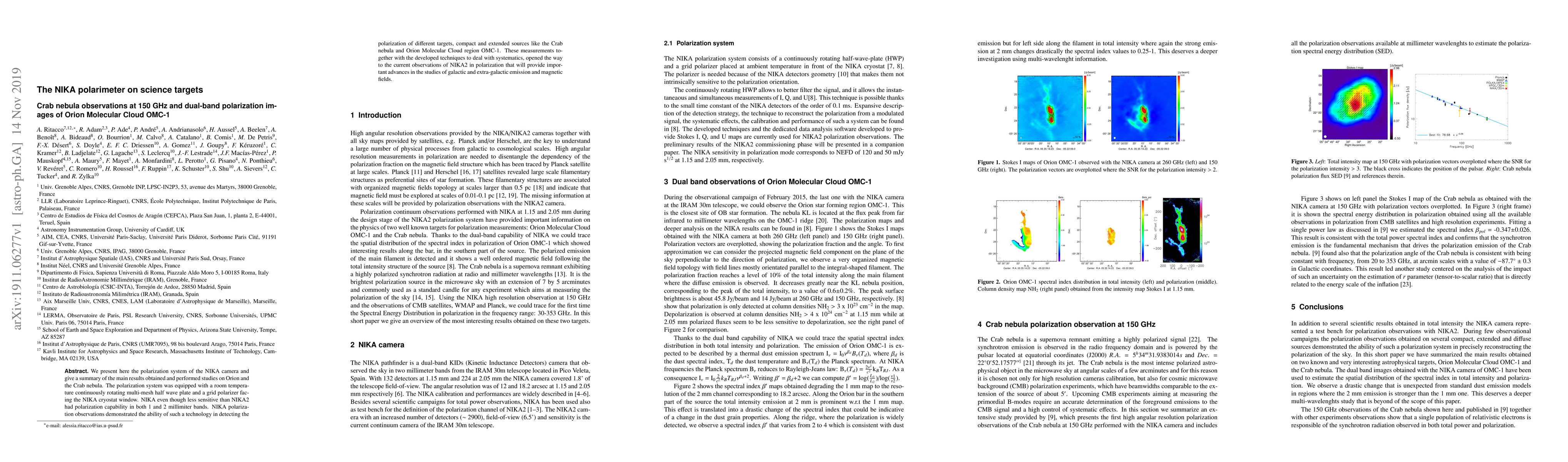 The NIKA polarimeter successfully detected polarization in the Crab nebula and Orion Molecular Cloud OMC-1, showcasing its capability in both 1 and 2 millimeter bands despite lower sensitivity compared to NIKA2. These findings pave the way for future NIKA2 polarization studies to advance research on galactic and extra-galactic emissions and magnetic fields.
